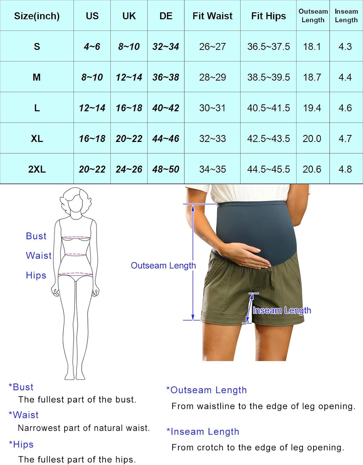 Customers find these maternity shorts comfortable, with one noting they’re not tight on the legs, and appreciate their true-to-size fit and length. The shorts receive positive feedback for their appearance, with one customer mentioning they’re not so long as to look frumpy, and customers like the pockets and material quality. Customers disagree on the stretchiness of the material.