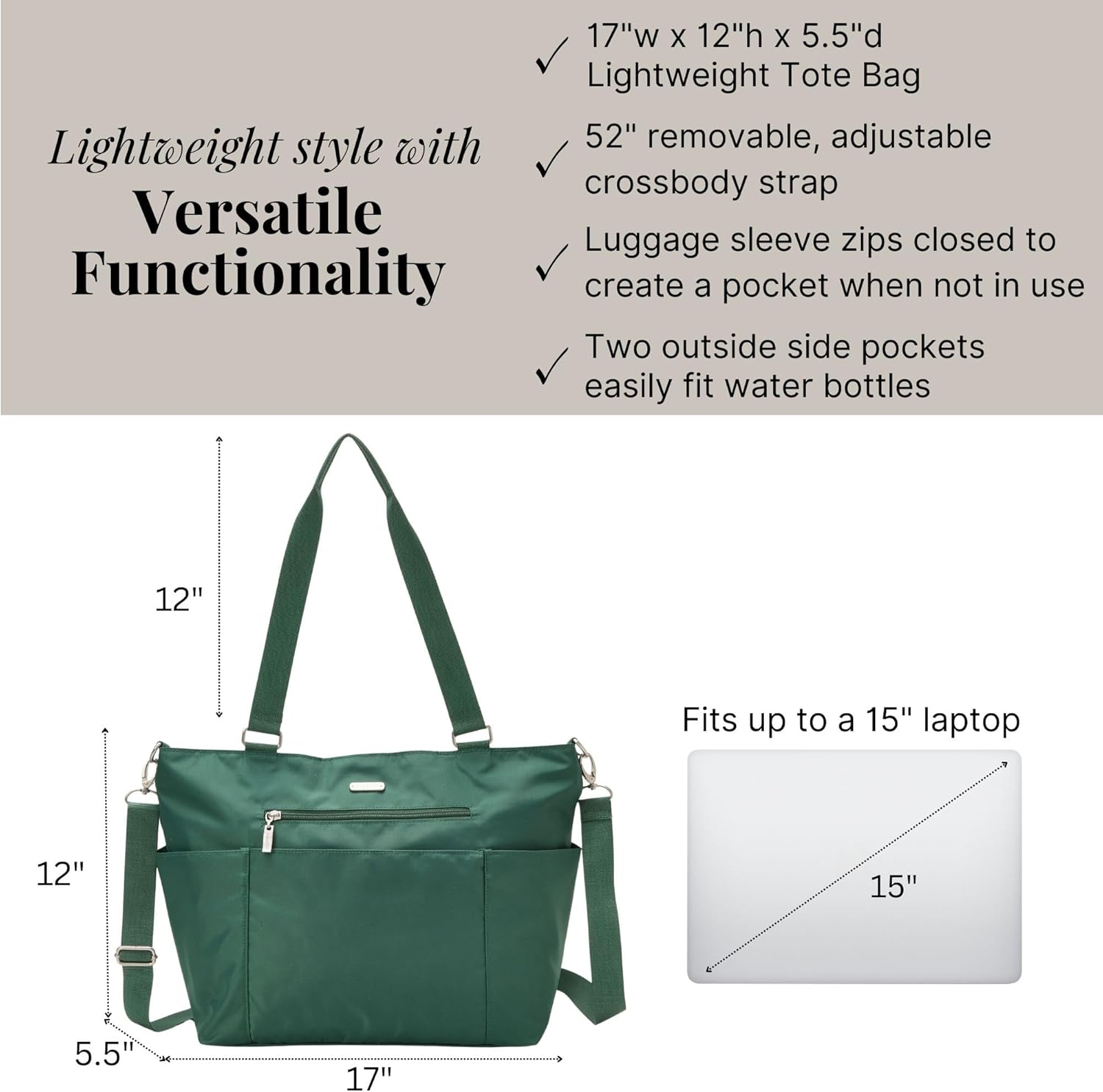 Baggallini Essential Laptop Tote – Work Tote Bag with Laptop Sleeve – Lightweight Travel Crossbody Shoulder Bag for Women