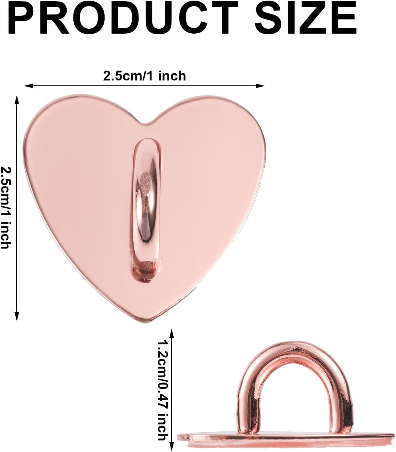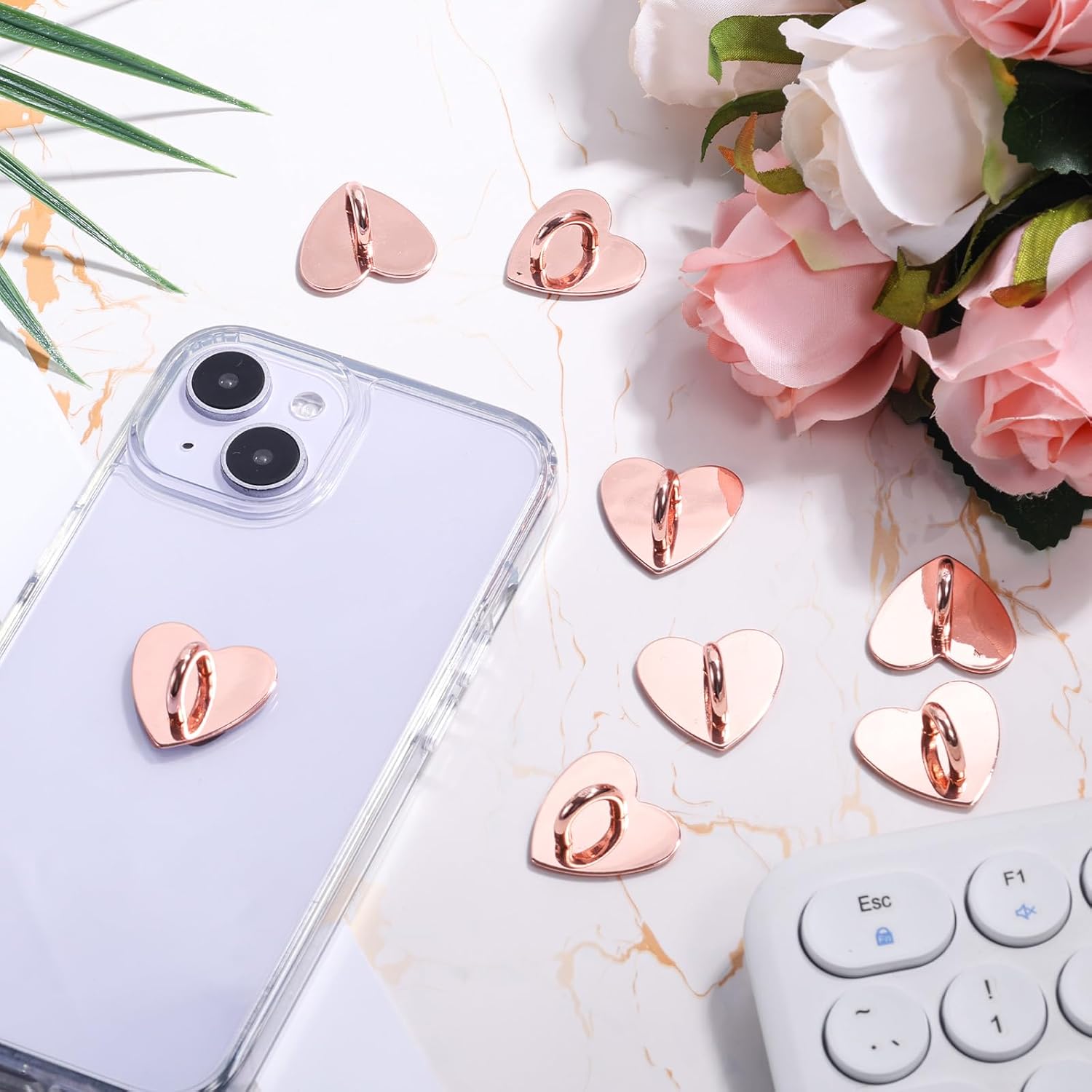 8pcs Cell Phone Ring Holder, Cute Heart Phone Charm Hooks Adhesive Smartphone Finger Ring Stand Sticky Metal Loop Grip for Cellphone Case Pad Tablet DIY Accessories (Rose Gold)