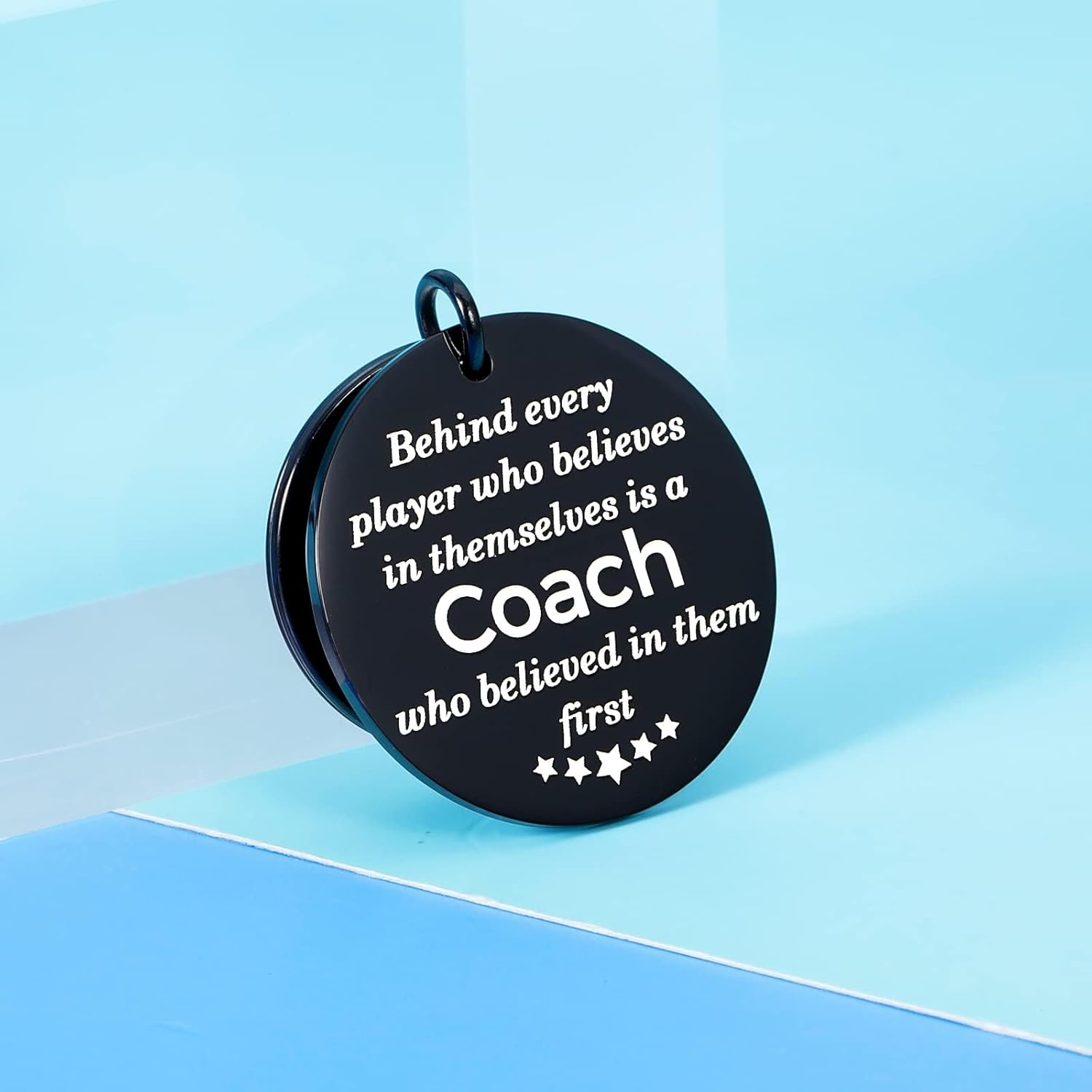 ❥ This keychain engraved with “Behind every player who believes in themselves is a coach who believed in them first.” If you want to give the coach a special gift, then you can choose this small but memorable gift.
