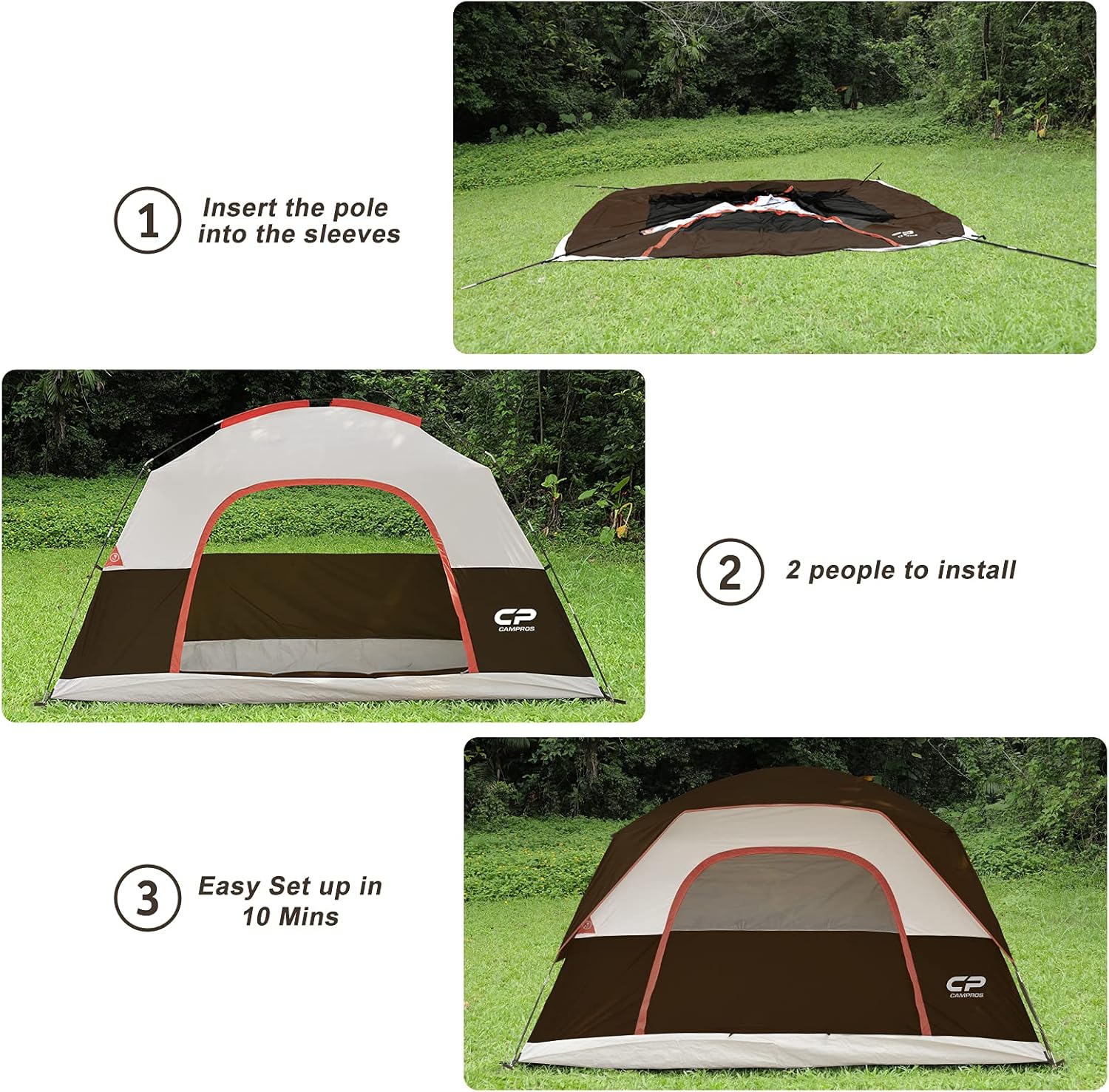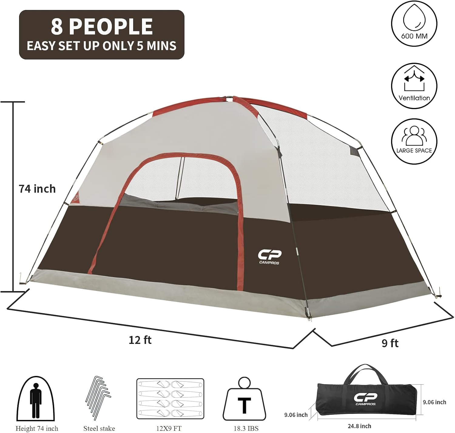 CAMPROS CP Tent 6/8 Person Camping Tents, Waterproof Windproof Family Tent with Top Rainfly, Large Mesh Windows, Double Layer, Easy Set Up, Portable with Carry Bag, for All Seasons