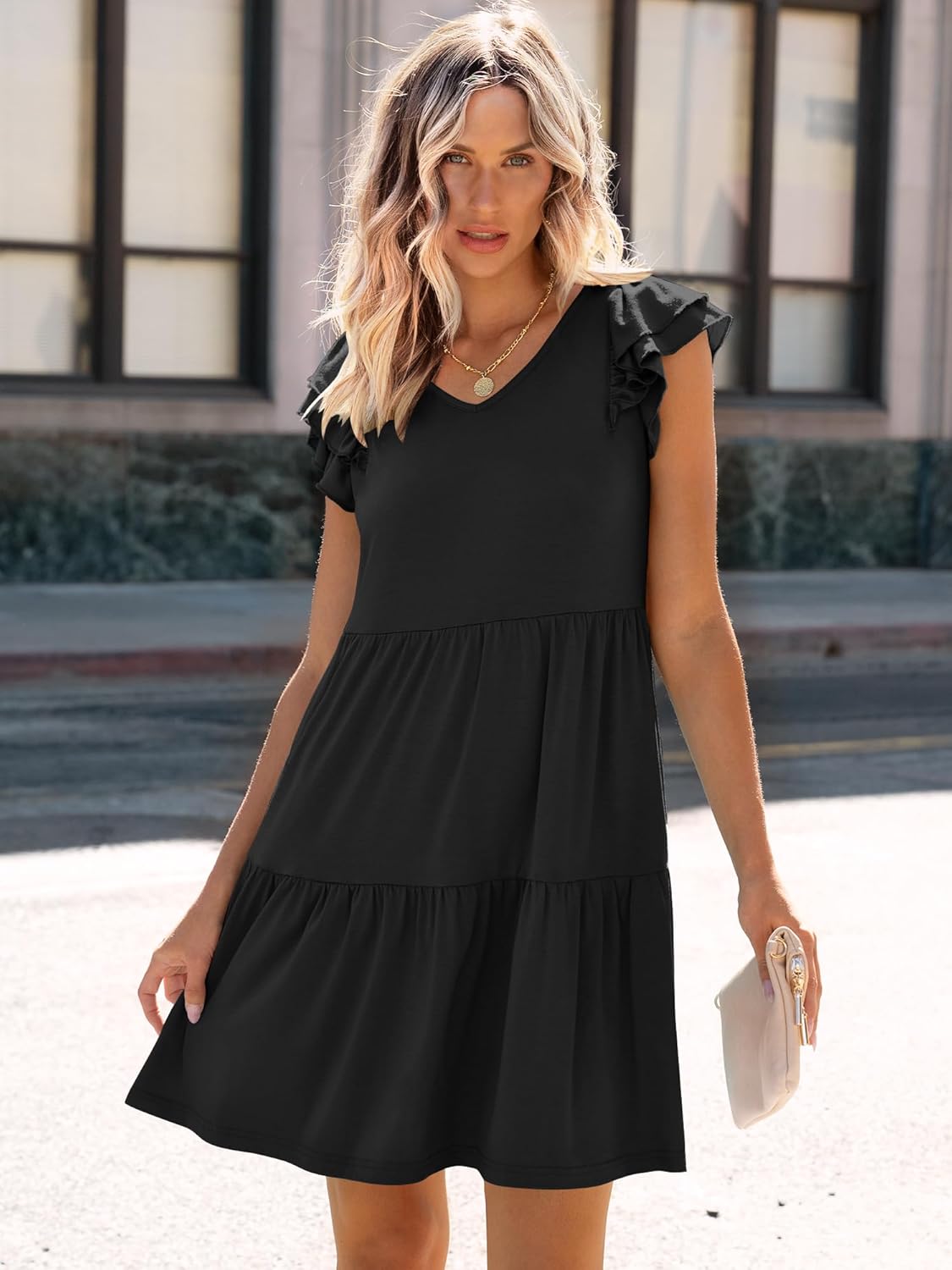 ANRABESS Womens Summer Ruffle Cap Sleeve Mini Dress 2025 Spring Swing V Neck Beach Vacation Short Sundress