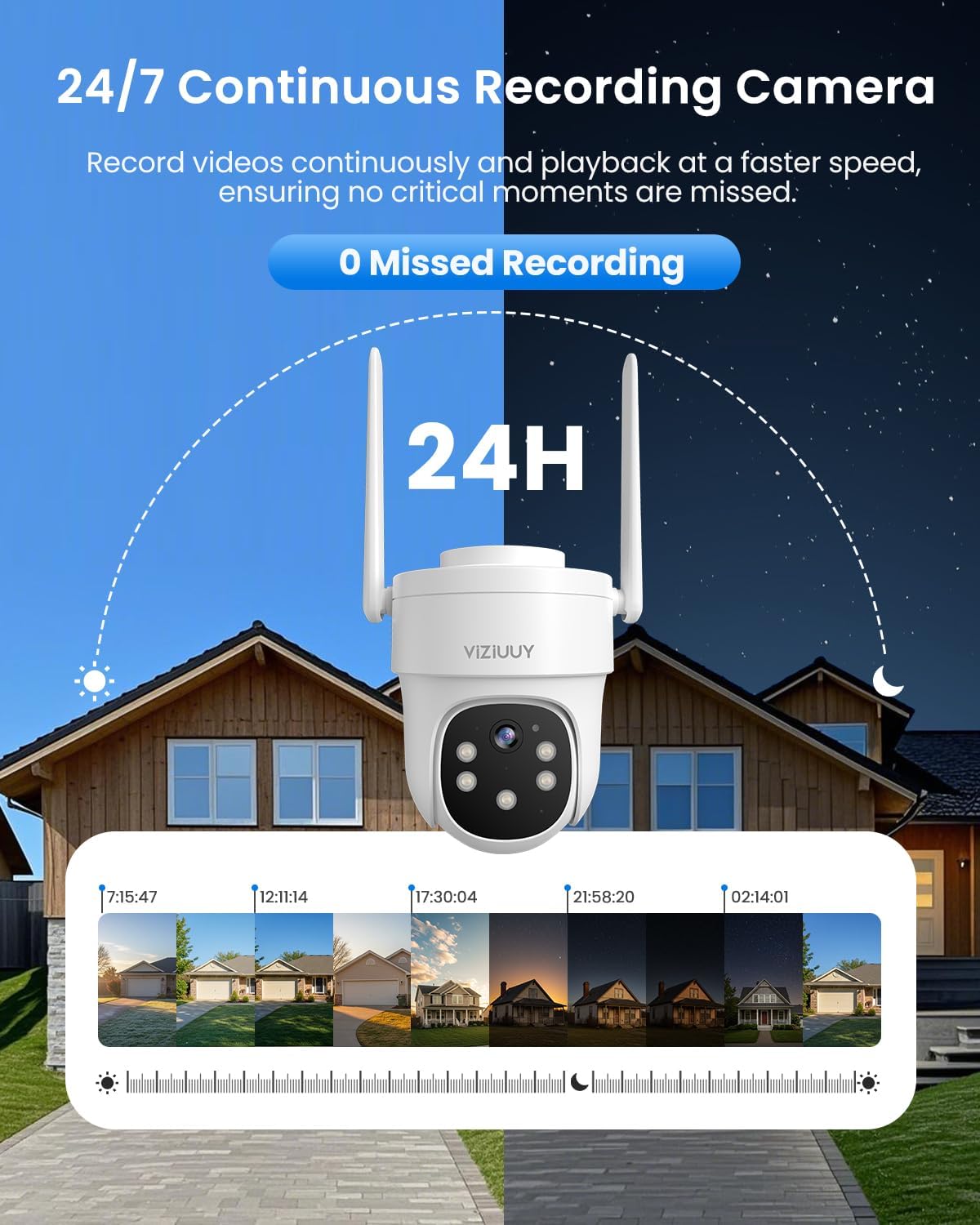 [Upgraded WIFI 6 & Bluetooth Connection] VIZIUUY security camera outdoor offers Wi-Fi 6 compatibility and supports one-touch connection, bringing notable benefits to you: reduced latency, faster speeds, and increased network security, user-friendly! Please note: Only support 2.4GHz wifi, not 5G wifi