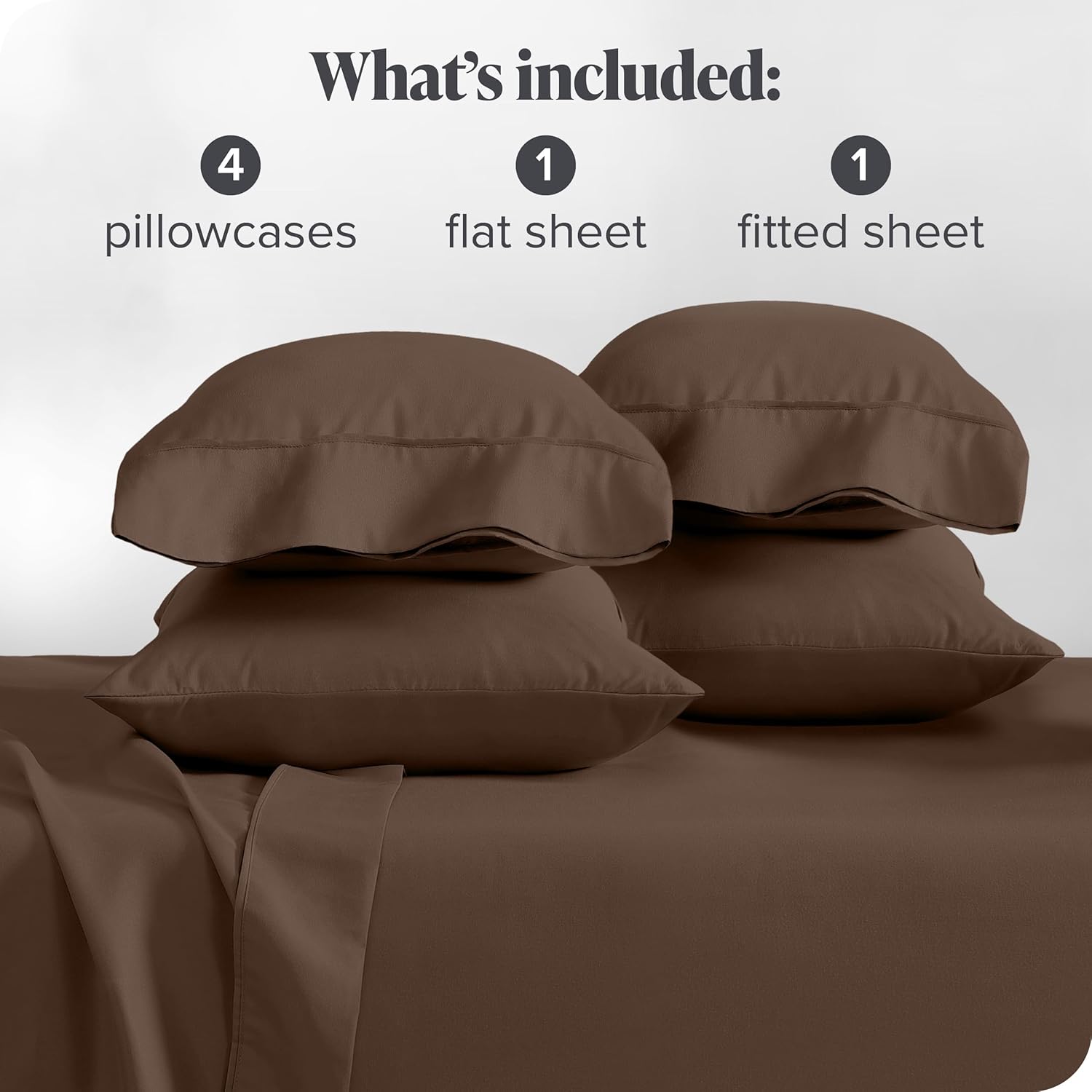 Bare Home Hotel Luxury Queen Sheet Set, Extra Soft – 6 Piece Set – Deep Pockets – Easy Fit – Cooling & Breathable – Wrinkle, Fade, Stain Resistant – Includes 4 Pillowcases (Queen, Cocoa)