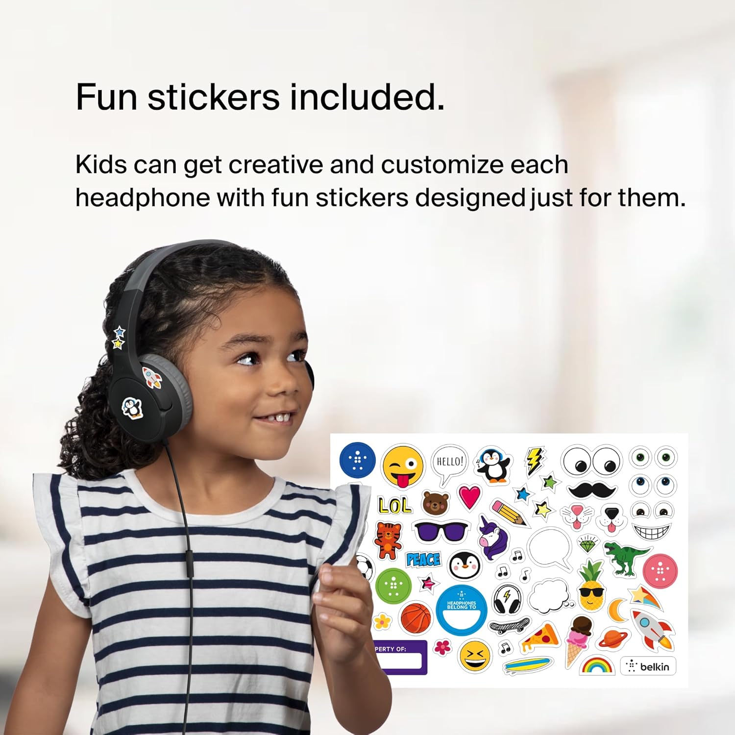 BUILT-IN MICROPHONE & SAFE SOUND: The wire has a built-in microphone for video and phone calls. And with Belkin Signature Sound with audio tuned specifically for kids, this headphone set has an 85dB volume limiter to protect your little one’s ears.