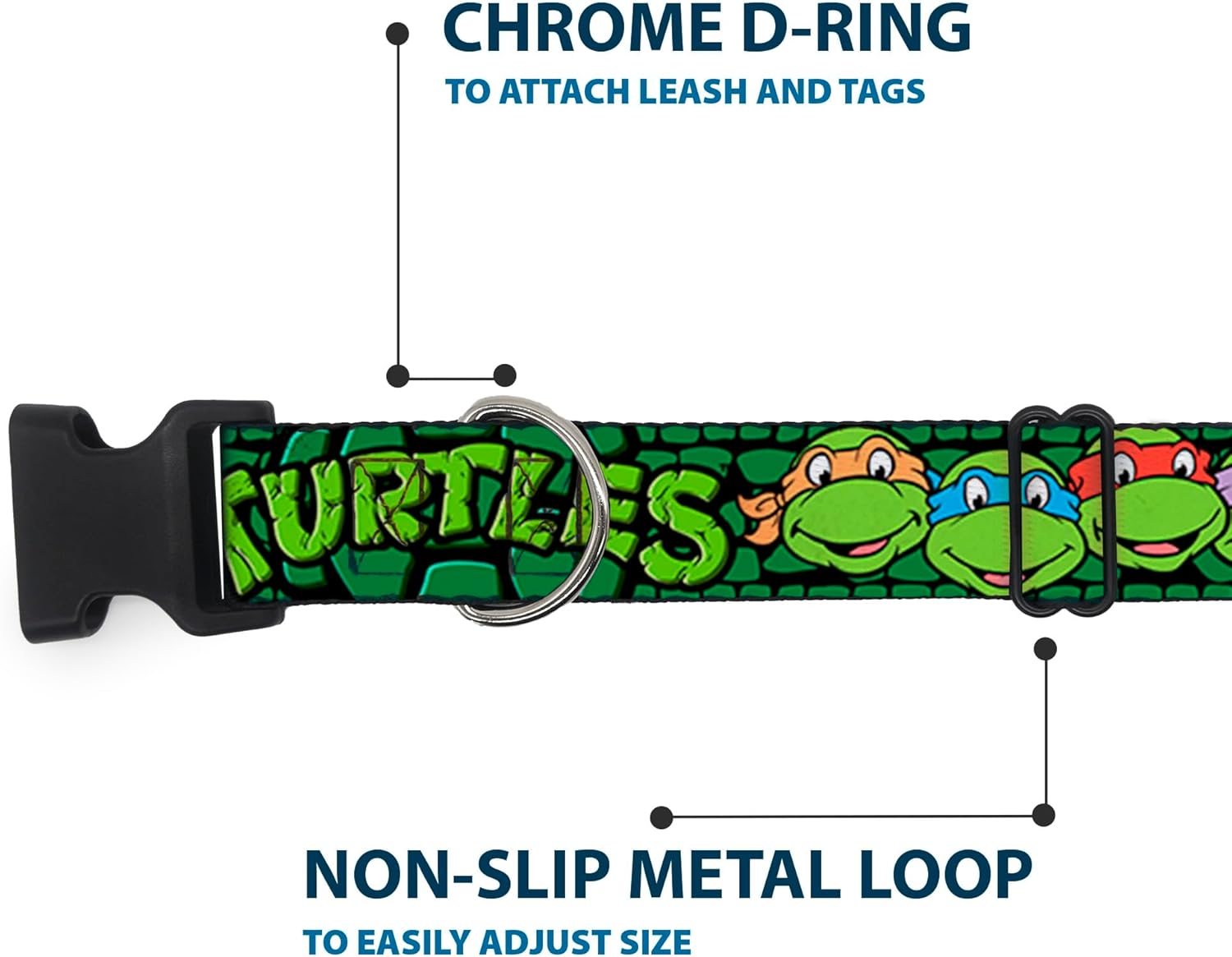 Buckle-Down Classic Tmnt Group Faces/Turtles Turtle Shell Black/Green Plastic Clip Collar, Medium/11-17″