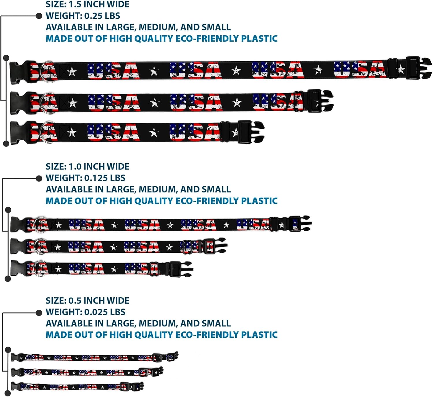 Buckle-Down Plastic Clip Collar – USA w/Star Black/US Flags – 1.5″ Wide – Fits 18-32″ Neck – Large