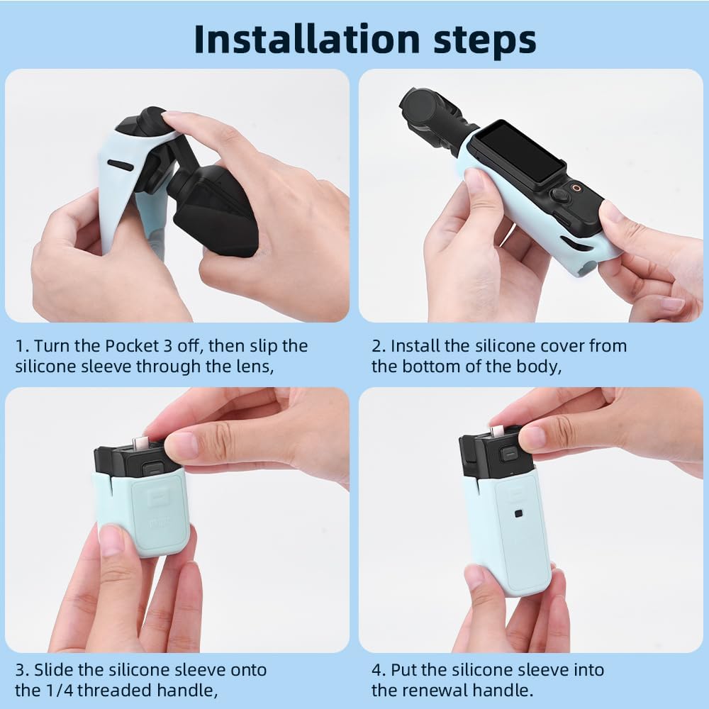 CAPART Silicone Protective Sleeve for DJI OSMO Pocket 3, Scratch-Proof Protective Cover Skin of Body | Screen | Gimbal | 1/4″ Thread Handle (Wathet)