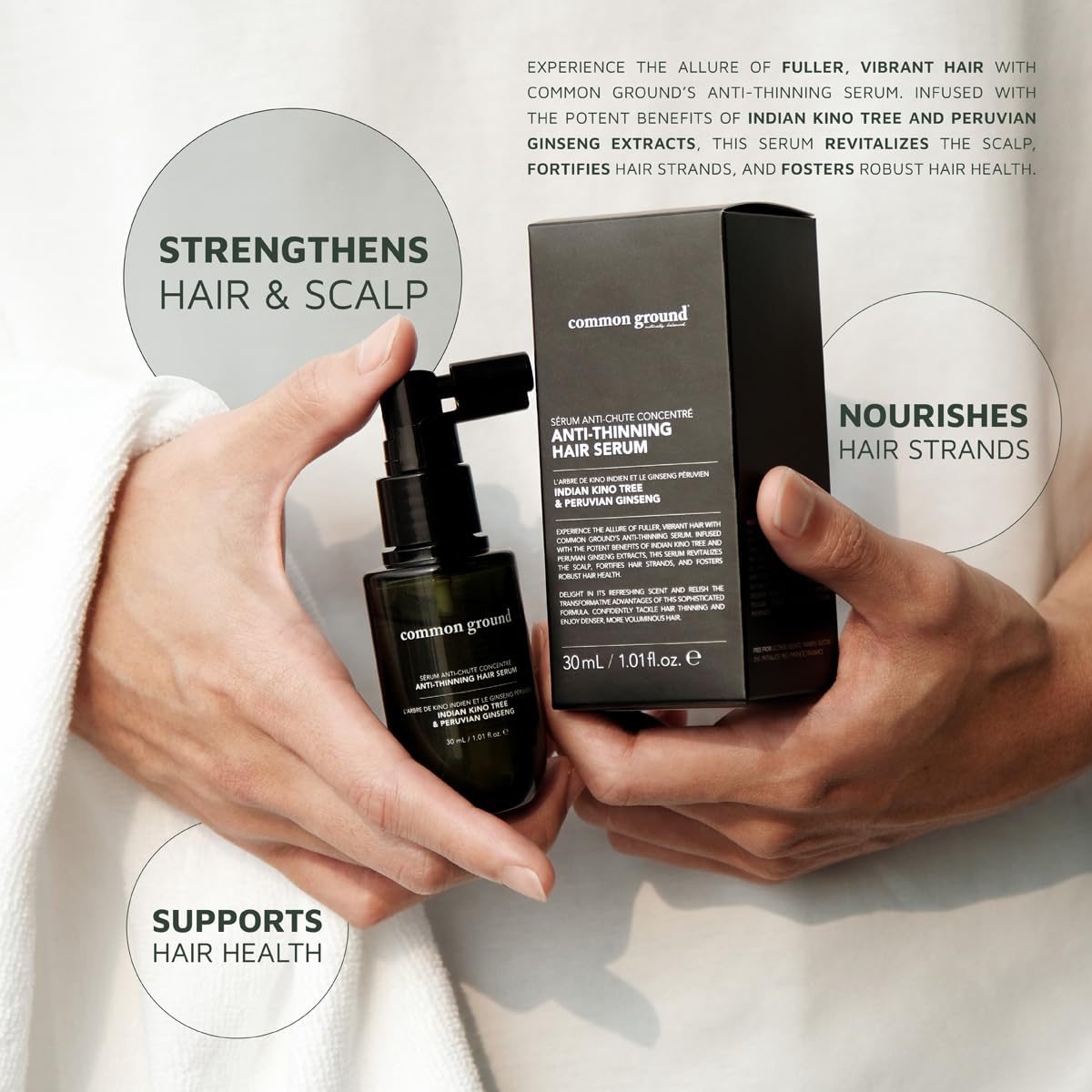 Common Ground Natural Concentrated Anti-Thinning Hair Serum, Sulphate, Paraben & Cruelty Free, Organic, Vegan, Plant-Based, Kino Tree & Ginseng DHT Blockers, for All Hair Types, Men & Women