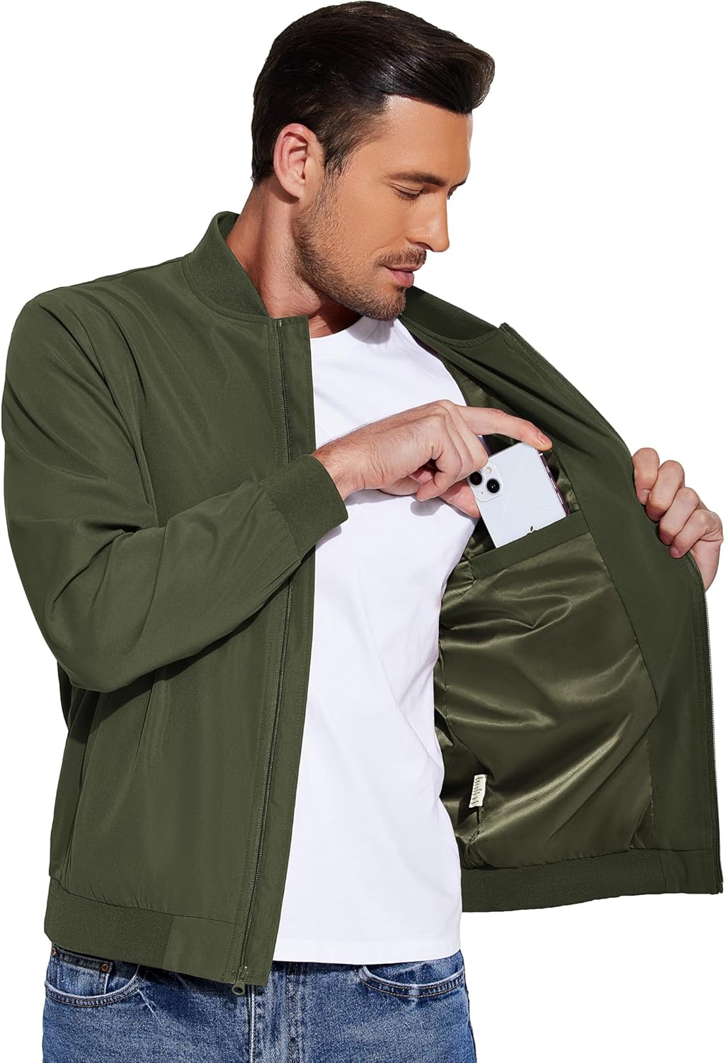 COOFANDY Men’s Lightweight Bomber Jacket Casual Fashion Windbreaker Flight Zip Up Jackets Outdoor Coat