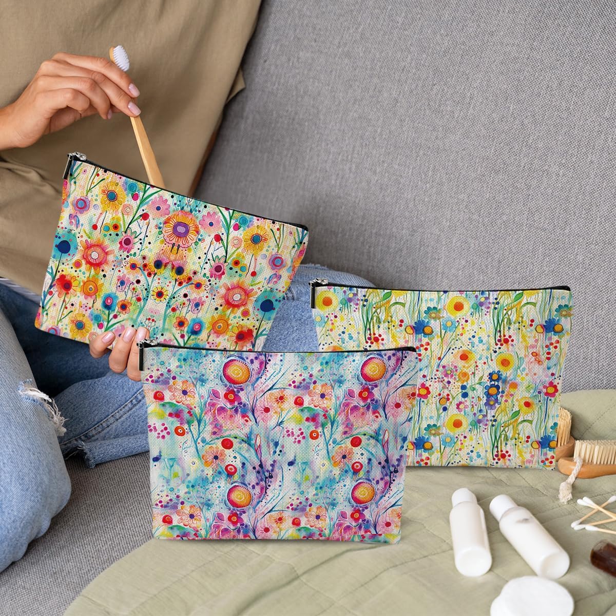 Cosmetic Bags for Women, Makeup Bag, Travel Toiletry Bag, Watercolor Flower Makeup Bags Set, Floral Appreciation Mothers Day Birthday Friendship Gifts for Women Girls Grandma Mom Bestie Nurse