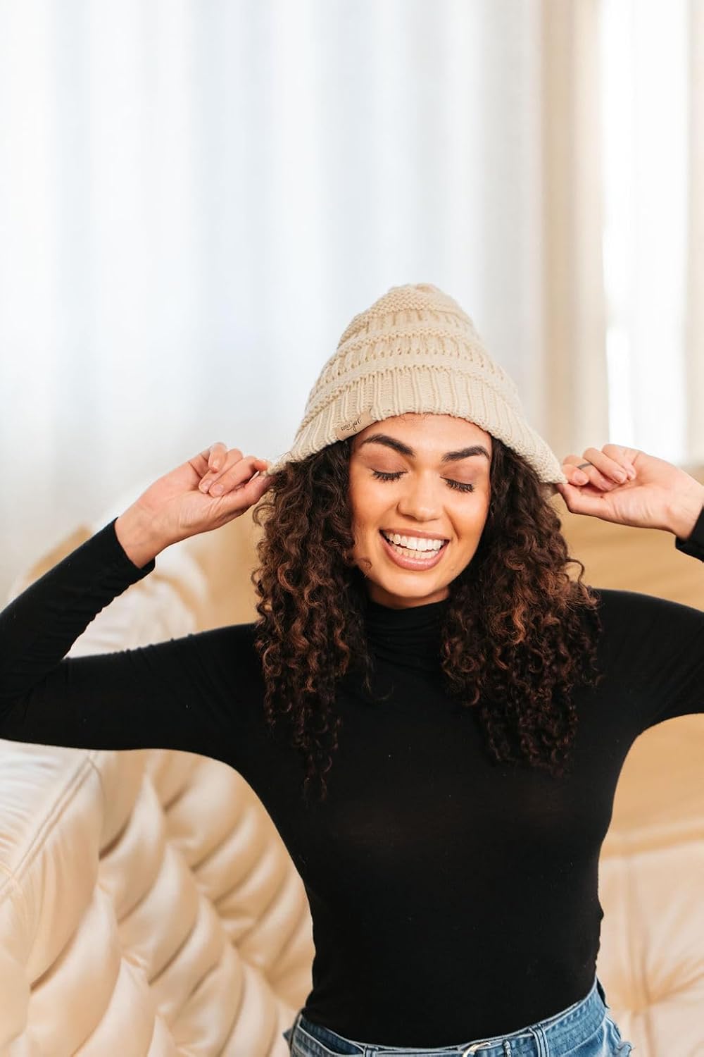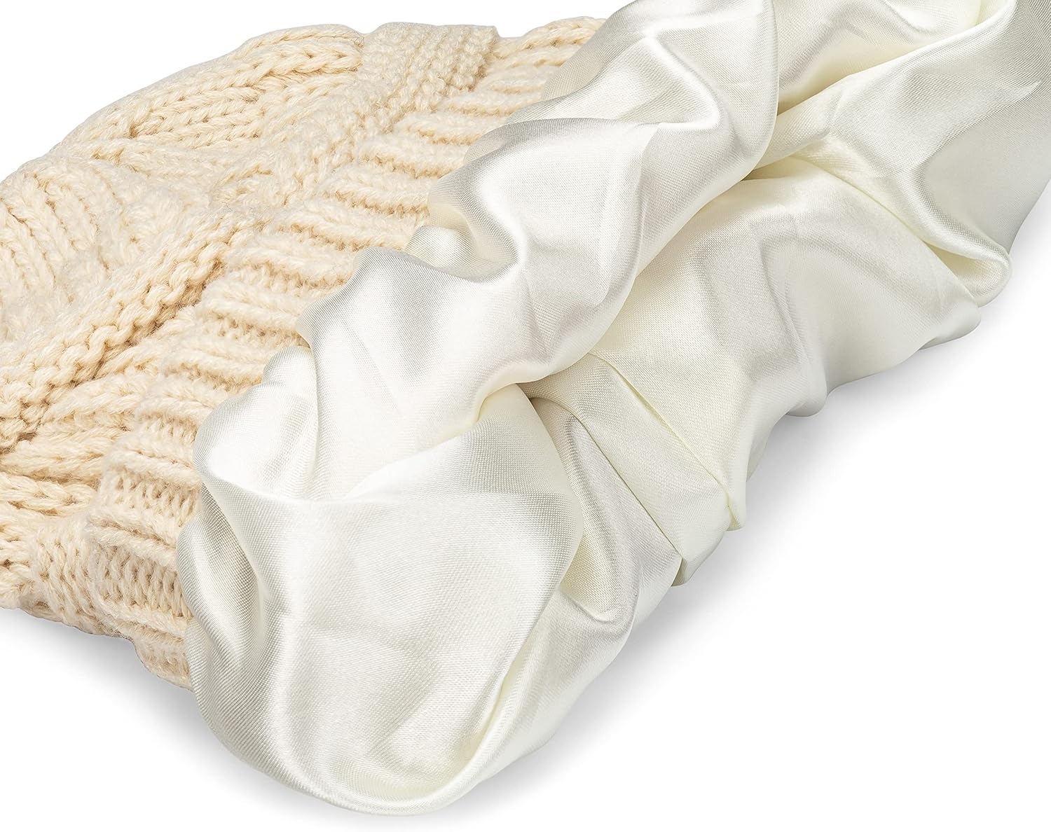 Curly Girl Method Approved Satin Lined Beanie – Winter Hat for Women with Natural Curls, Warm Cable Knit Cap for Hair Care