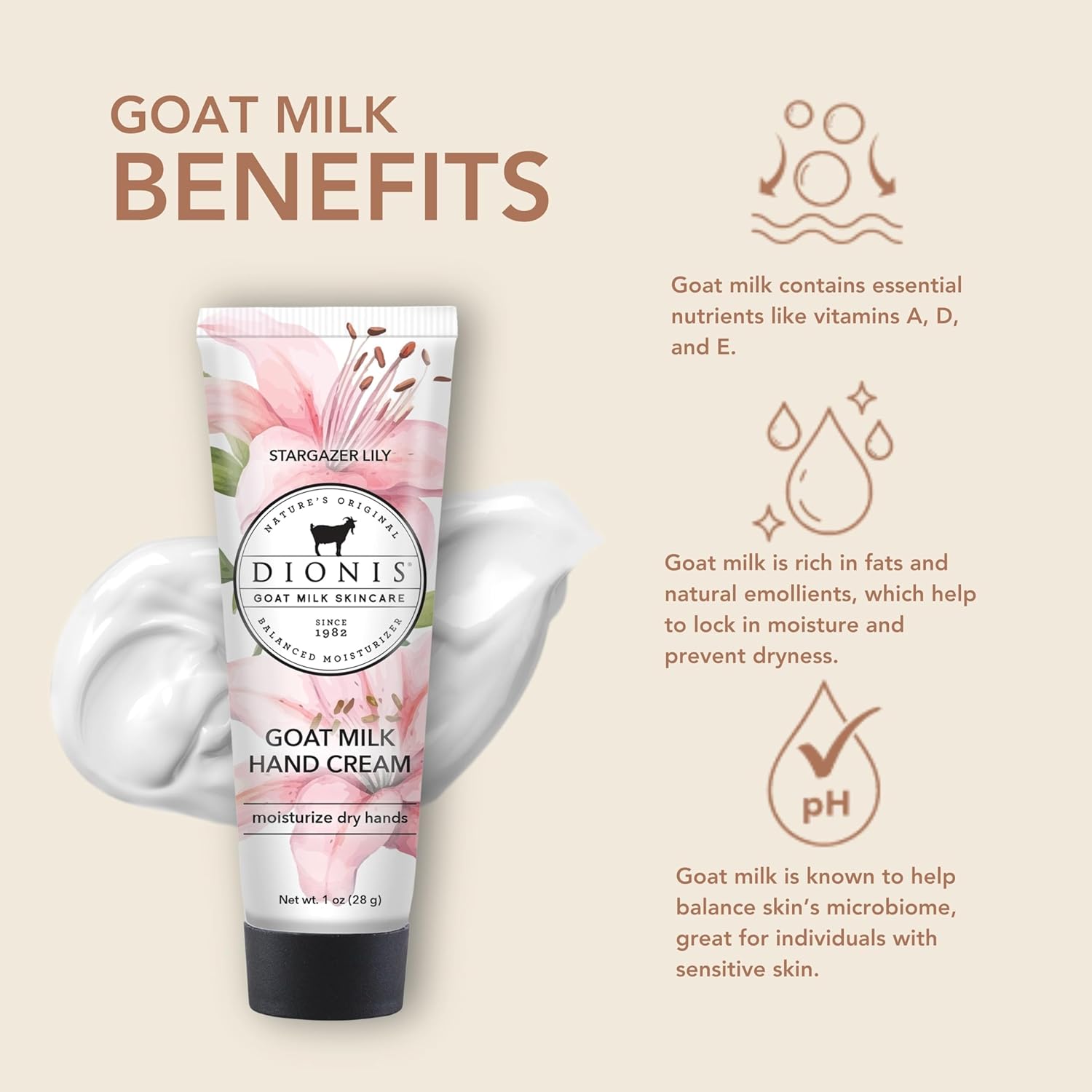 Dionis Goat Milk Skincare 1 oz Scented Hand Cream Set of 6, Moisturizing Lotion for Dry Skin, Good for Sensitive Skin, Cruelty-free and Paraben-free, Stargazer Lily