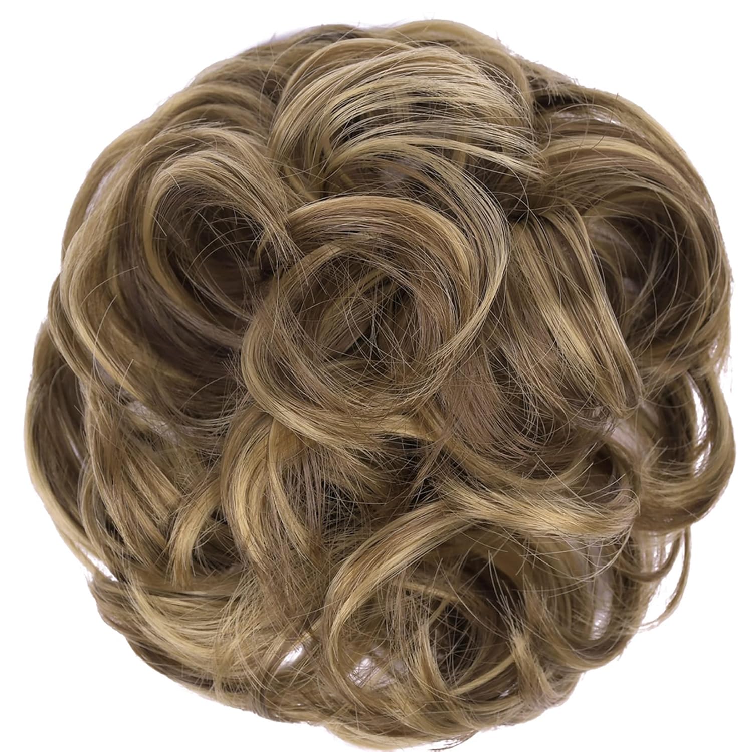 Elaine Messy Bun Hair Piece for Women, Thick Curly Hair Bun Scrunchies Synthetic Wavy Bun Hair Extensions Chignon Ponytail Updo Hairpieces Medium Ash Brown & Light Ash Blonde Highlights -#83A