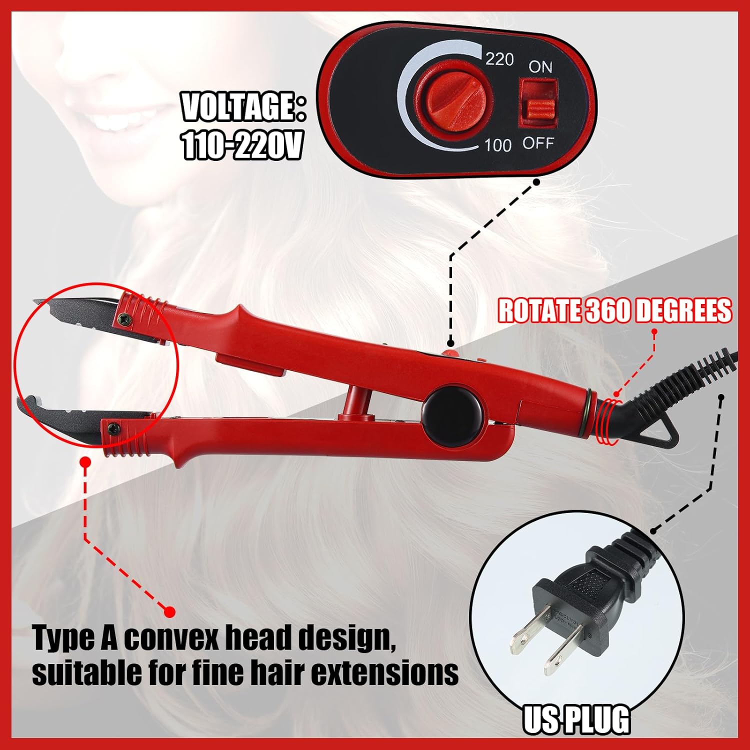 Hair Extensions Iron Fusion Keratin Heat Tool Heat Connector Wand with Fusion Glue Protector Template Hair Clip Finger Protector 2 Bag Keratin Glue Granule Bead(Red)