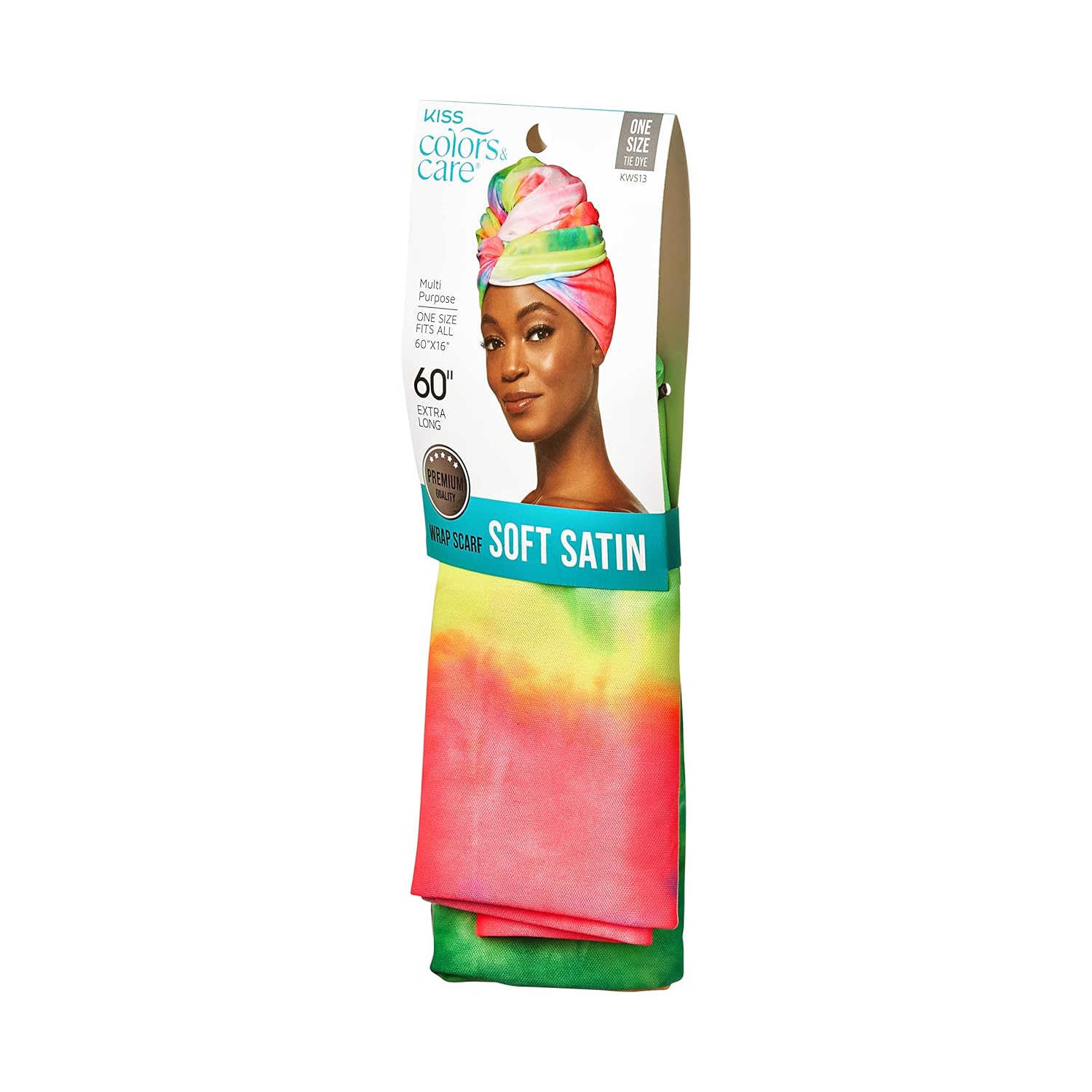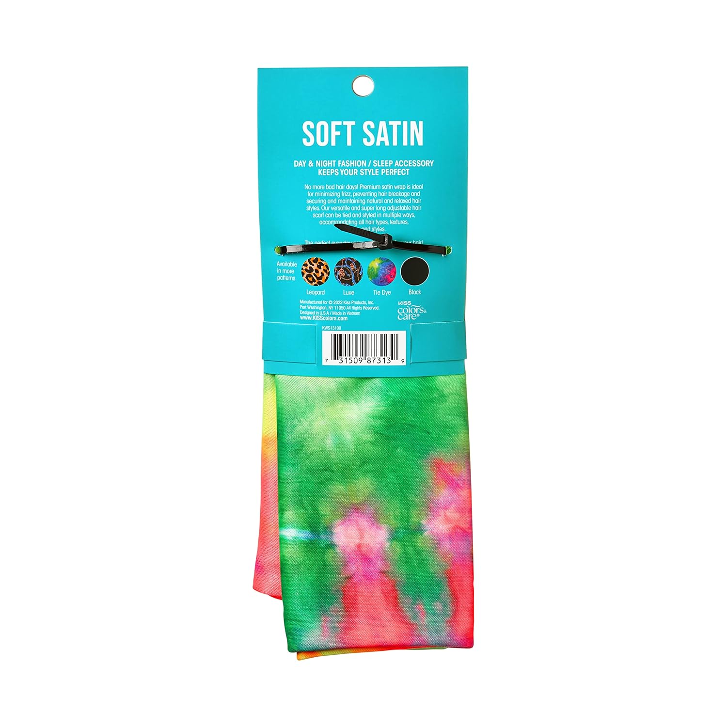KISS COLORS & CARE Soft Satin Wrap Scarf – Tie Dye, Fashionable Multi-Purpose, Premium Hair Scarf for Minimizing Frizz, Chic & Comfortable, Preventing Breakage & Securing a Variety of Hair Styles
