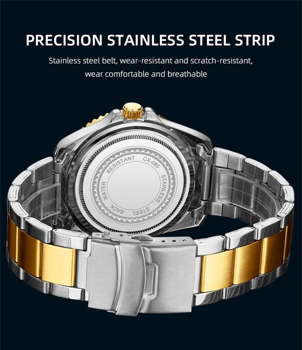 Be the first to review “MASTOP Men Watch Silver Gold Stainless Steel Two Tone Brand Watch Waterproof Analog Quartz Watches with Calendar”
