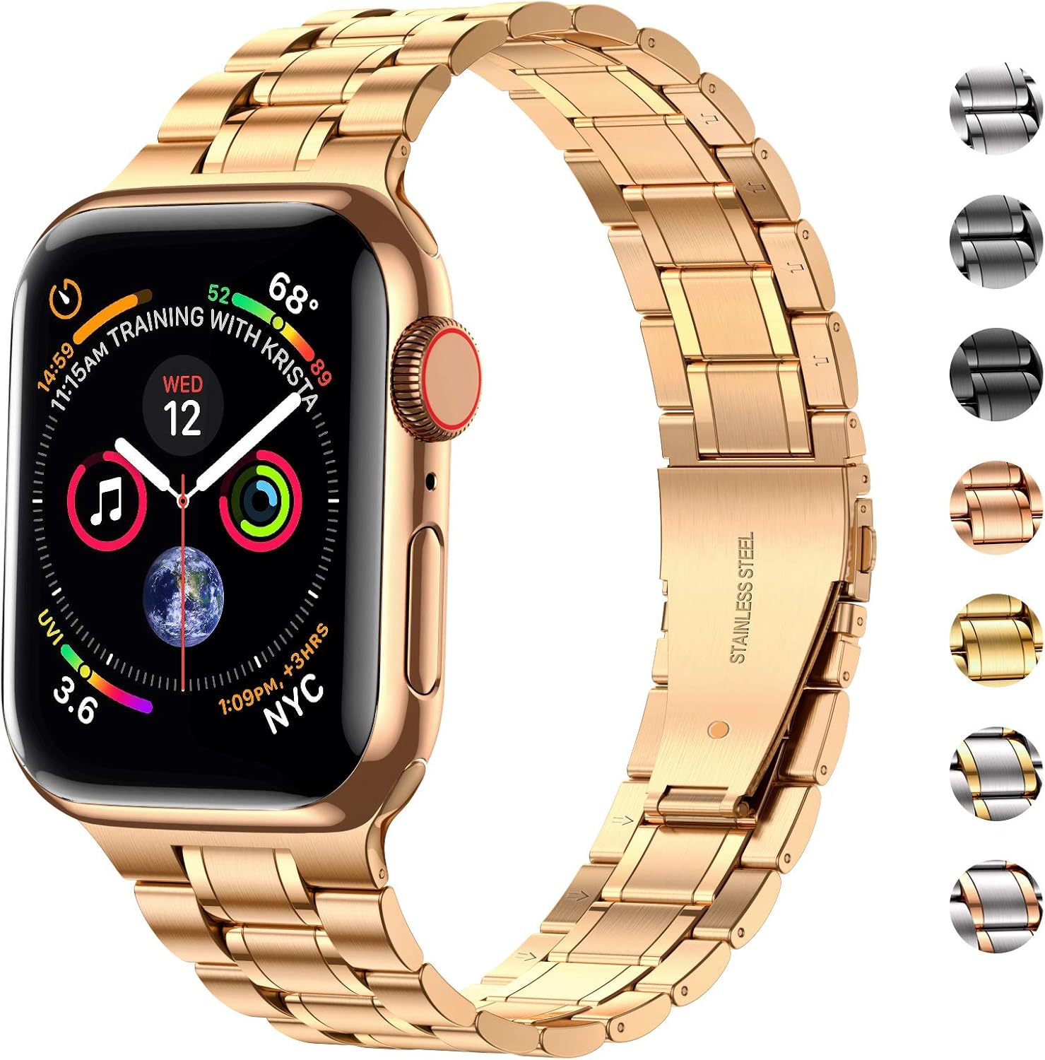 MioHHR Solid Stainless Steel Band Compatible with Apple Watch 45mm, Metal Strap with Soft TPU Case for iWatch Series 9 8 7 45mm Women and Men, Rose Gold