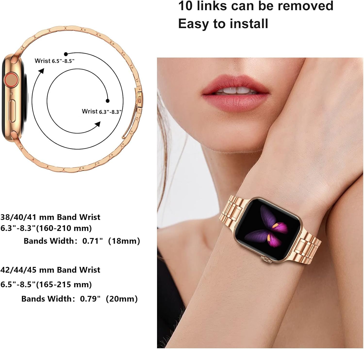Be the first to review “MioHHR Solid Stainless Steel Band Compatible with Apple Watch 45mm, Metal Strap with Soft TPU Case for iWatch Series 9 8 7 45mm Women and Men, Rose Gold”