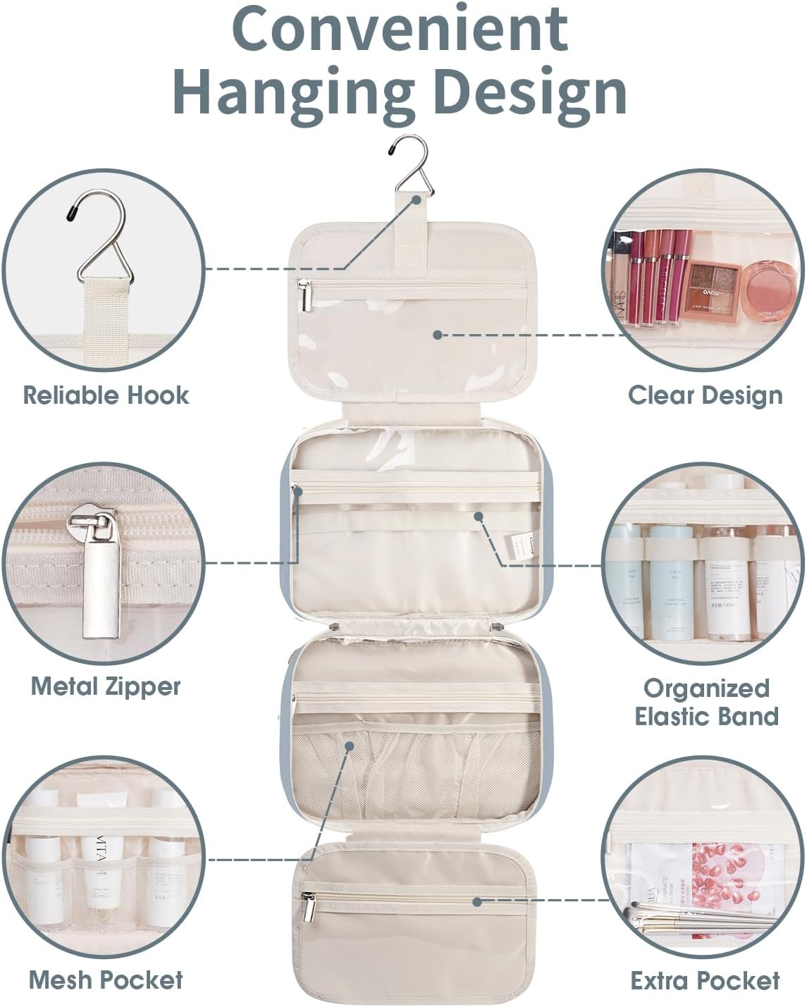 NOT BULKY DESIGN – Large Capacity yet compact design, weighing 14 ounces. large metal hook allows hanging the toiletry case from towel rack, coat hook or whereever is available, making your toiletries and cosmetics displayed well for easy access