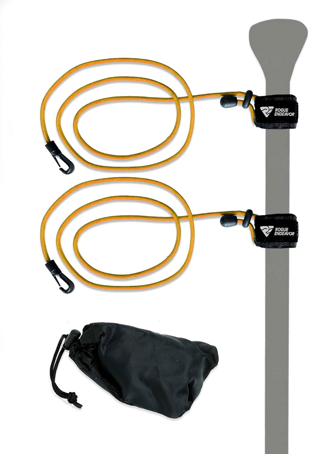 Rogue Endeavor® Rod Leash & Paddle Leash Kit, set of 2, Kayak Fishing & Paddle Boarding- 48″ Shock Cord Bungee, Quick Release Clip, Neoprene Lined Strap and Carrying Bag (set of 2)