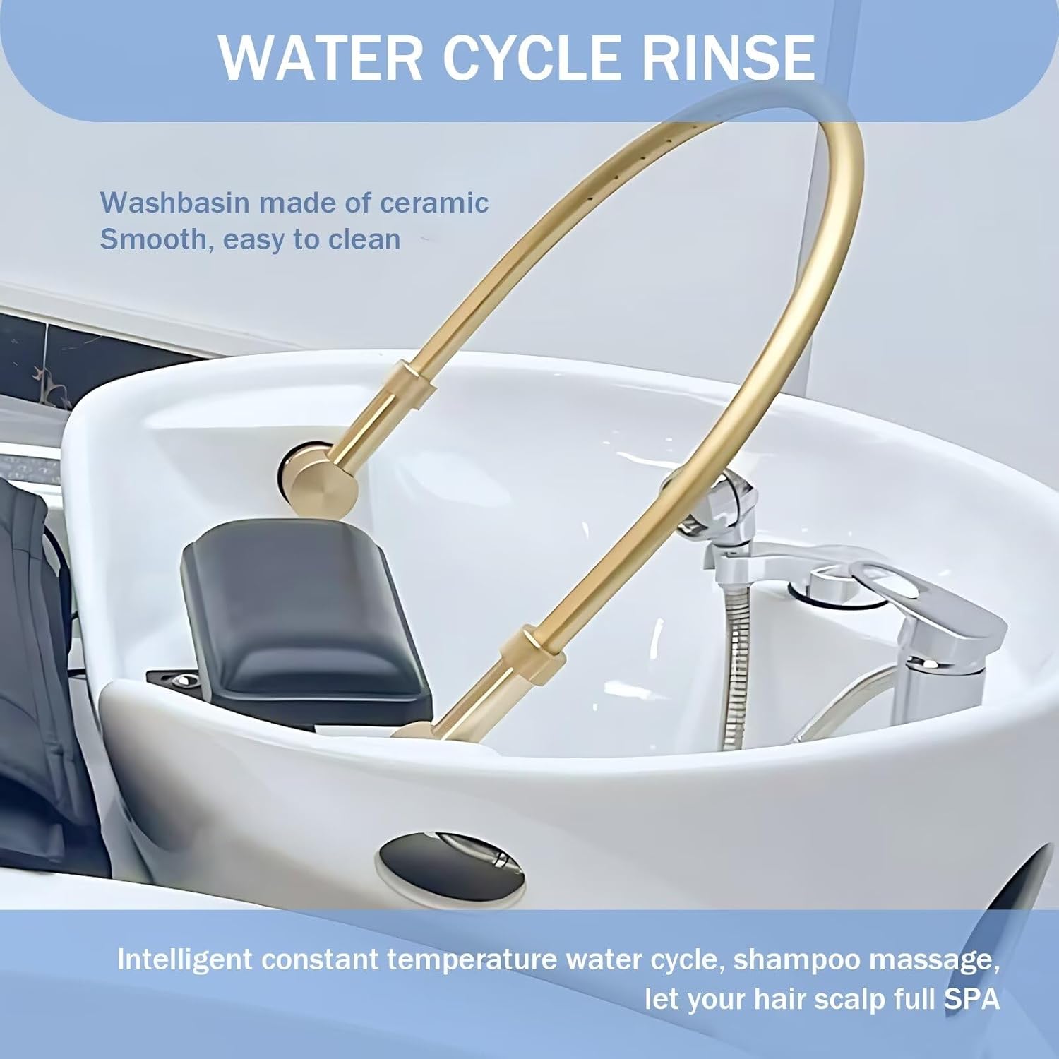 Fumigation Equipment:This shampoo bed is equipped with fumigation equipment designed to offer exceptional service; Fumigation significantly enhances nutrient absorption, and amplifies the efficacy of hair care treatments