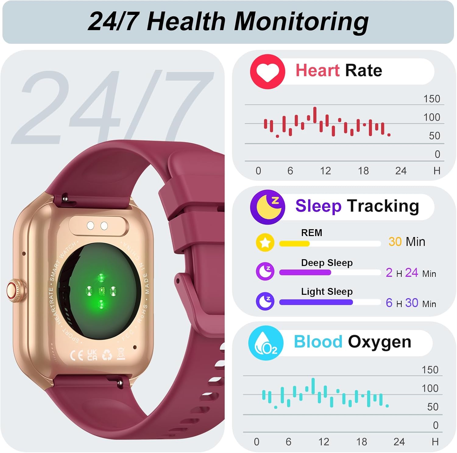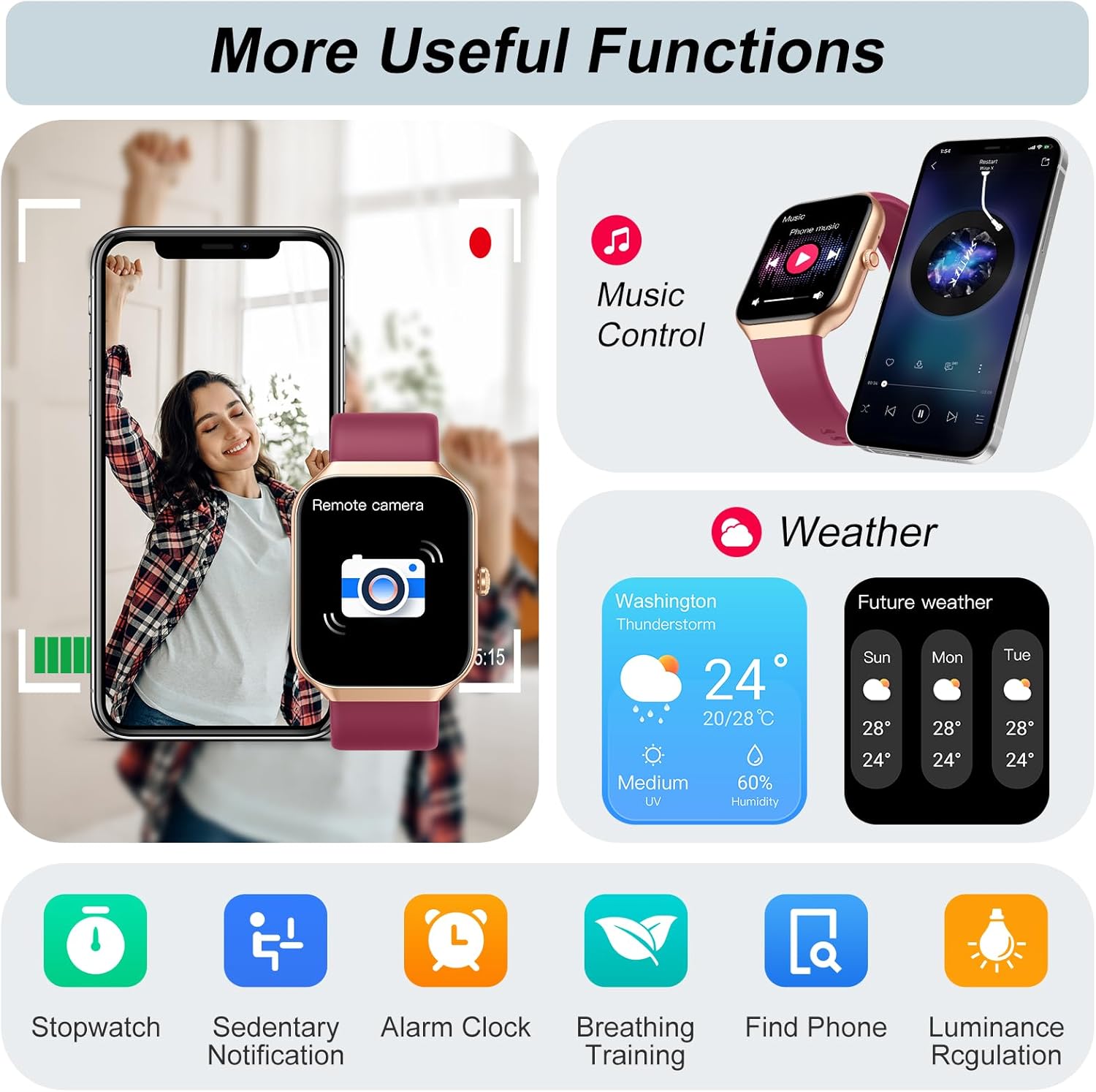 Long Battery Life and Multifunctional: The fitness tracker has a built-in, large-capacity battery. With only 1.5-2 hours of charging time, it offers a usage time of up to 5-7 days. This smartwatch also includes many practical functions, such as women’s health, breathing training, stopwatch, timer, alarm clock, sedentary reminder, music control, weather forecast, camera control, calculator, and more. The smartwatch is compatible with devices running Android 9.0+ and iOS 10.0+.