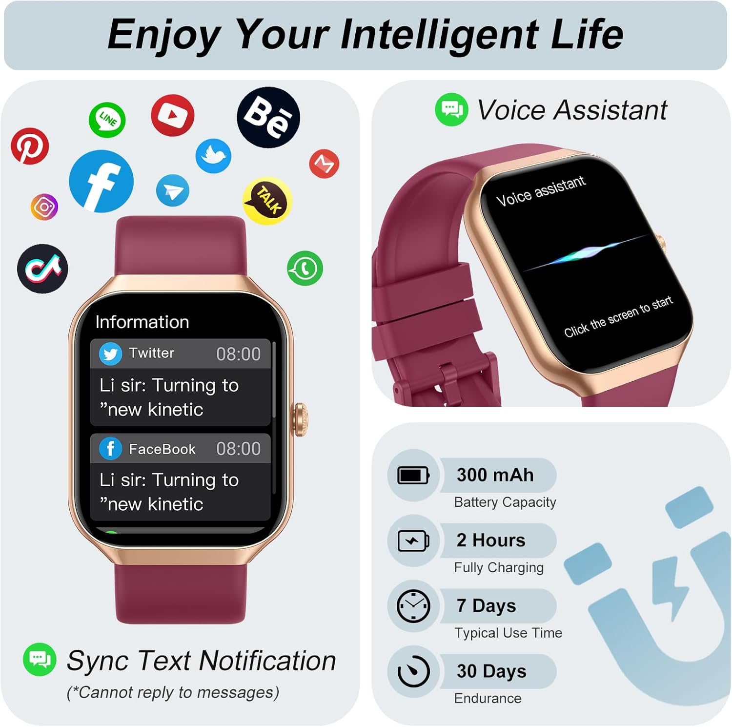 Bluetooth Call and Message Notifications: The smart watch is equipped with Bluetooth 5.3 chip, a built-in mic and HD speaker. After connecting to your smartphone via Bluetooth, you can answer or make calls, view call history and store contacts directly using the smartwatch. The smartwatch also provides notifications for social media messages (WhatsApp, Twitter, Facebook, Instagram, YouTube, etc) and SMS. All notifications are displayed on the watch and reminded by vibration.