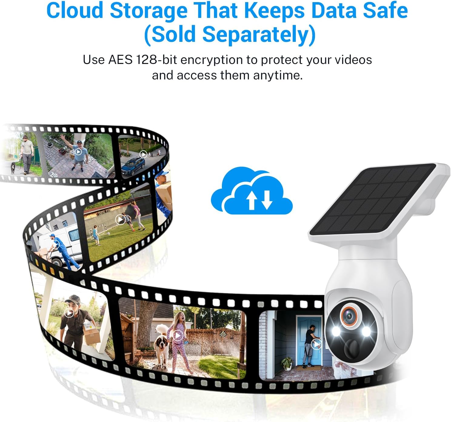 Solar-Powered 1080p WiFi Battery Camera, Security Cameras Wireless Outdoor for Home Surveillance, AI Human Detection, Color Night Vision, Cloud Storage (WiFi)