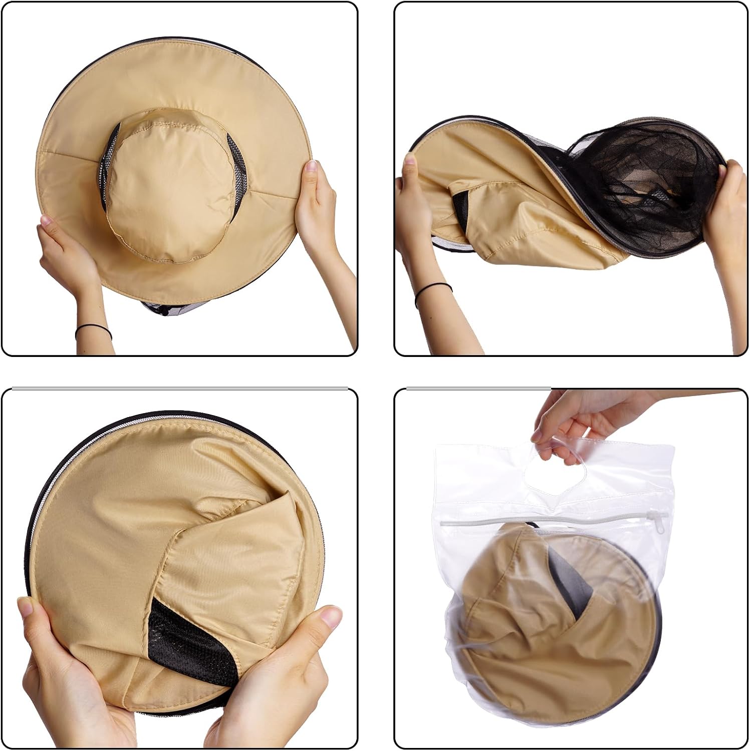 Sucrain 2 Pack Mosquito Head Net Hat Sun Hat Garden Bug Hat with Hidden Net Mesh for Outdoor Gardening Beekeeping