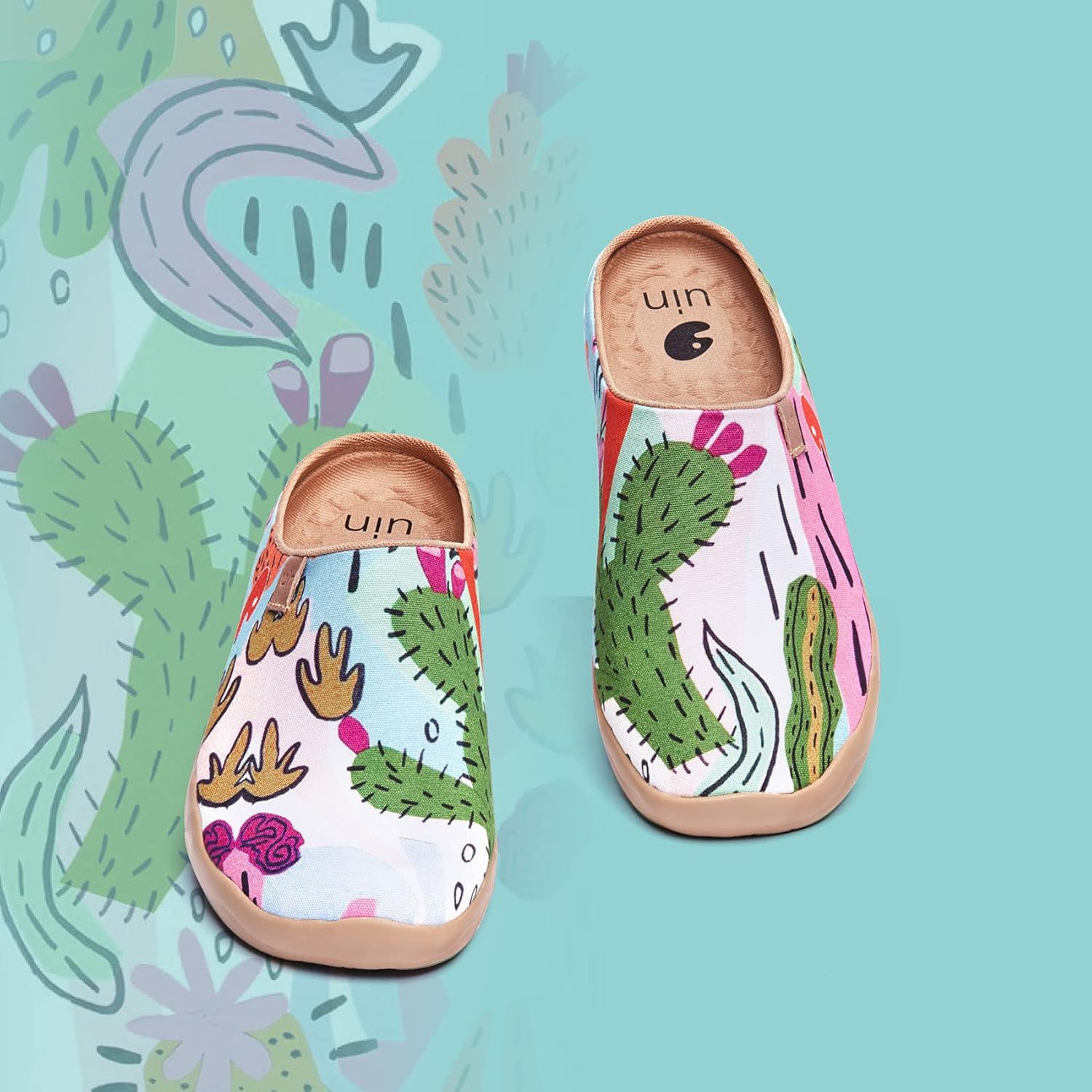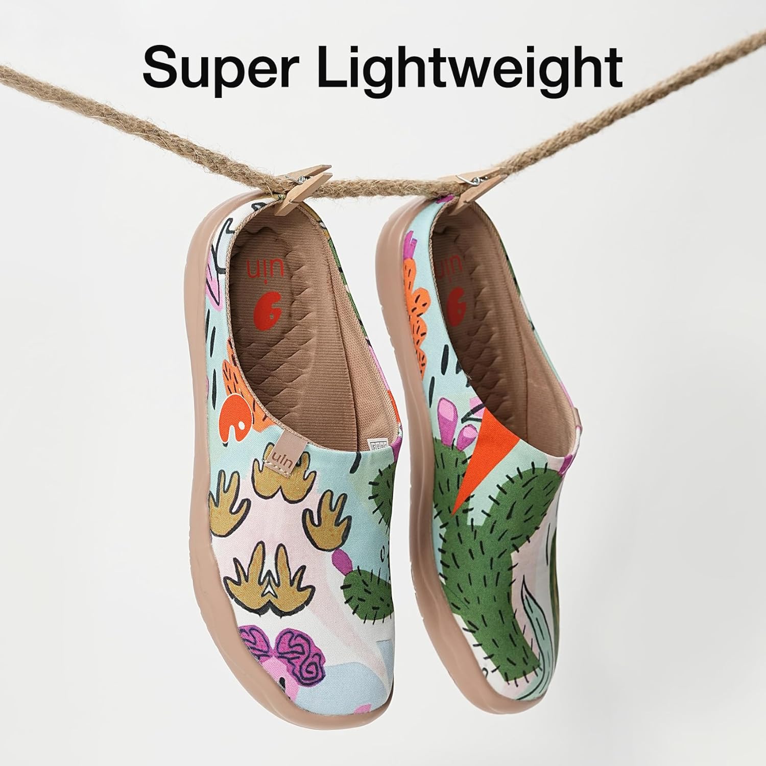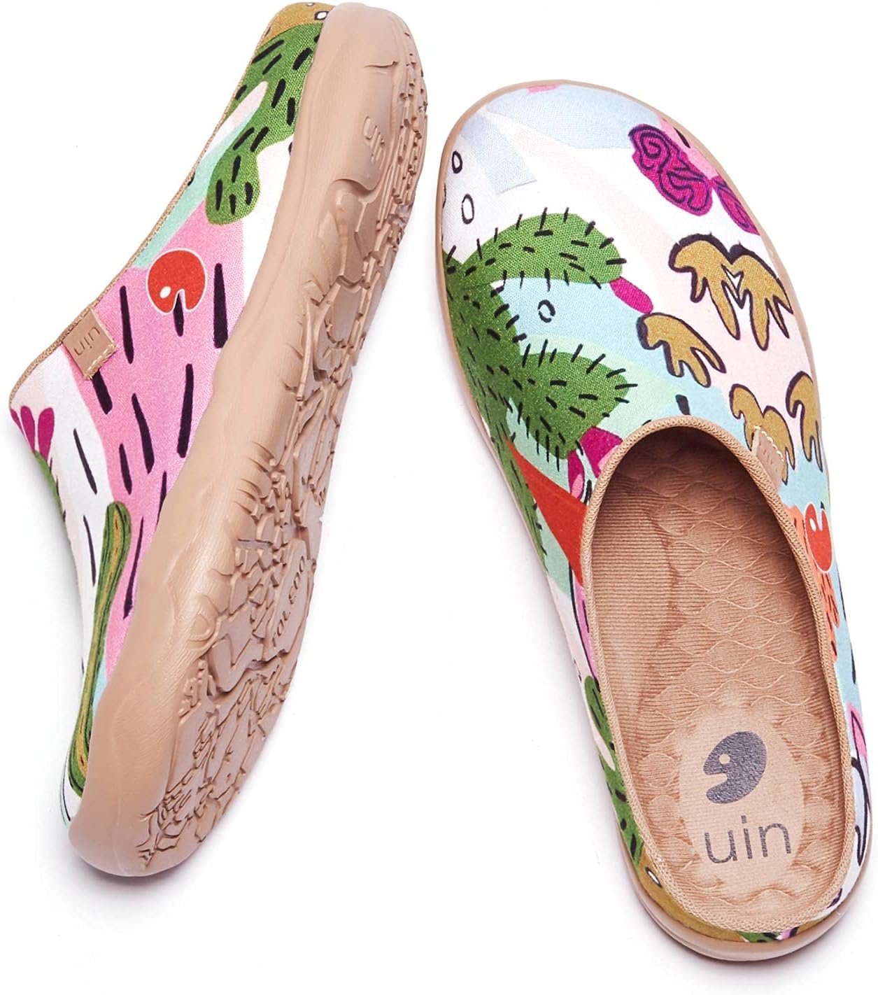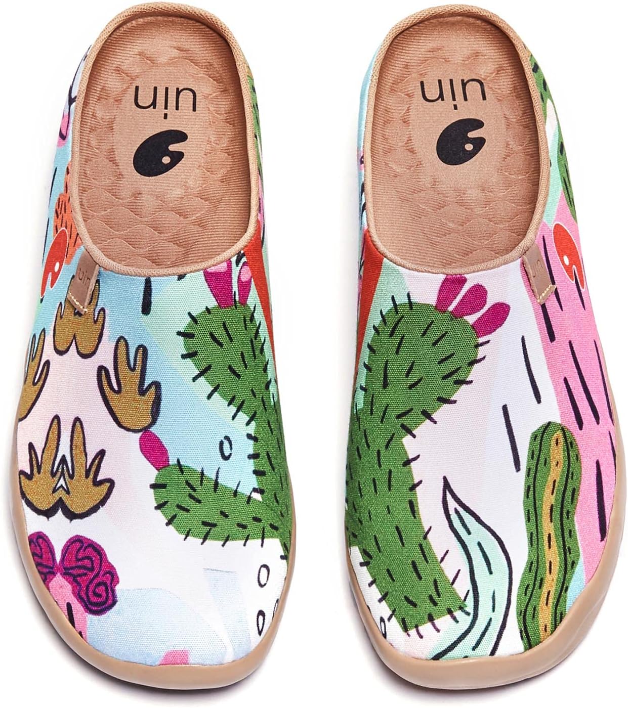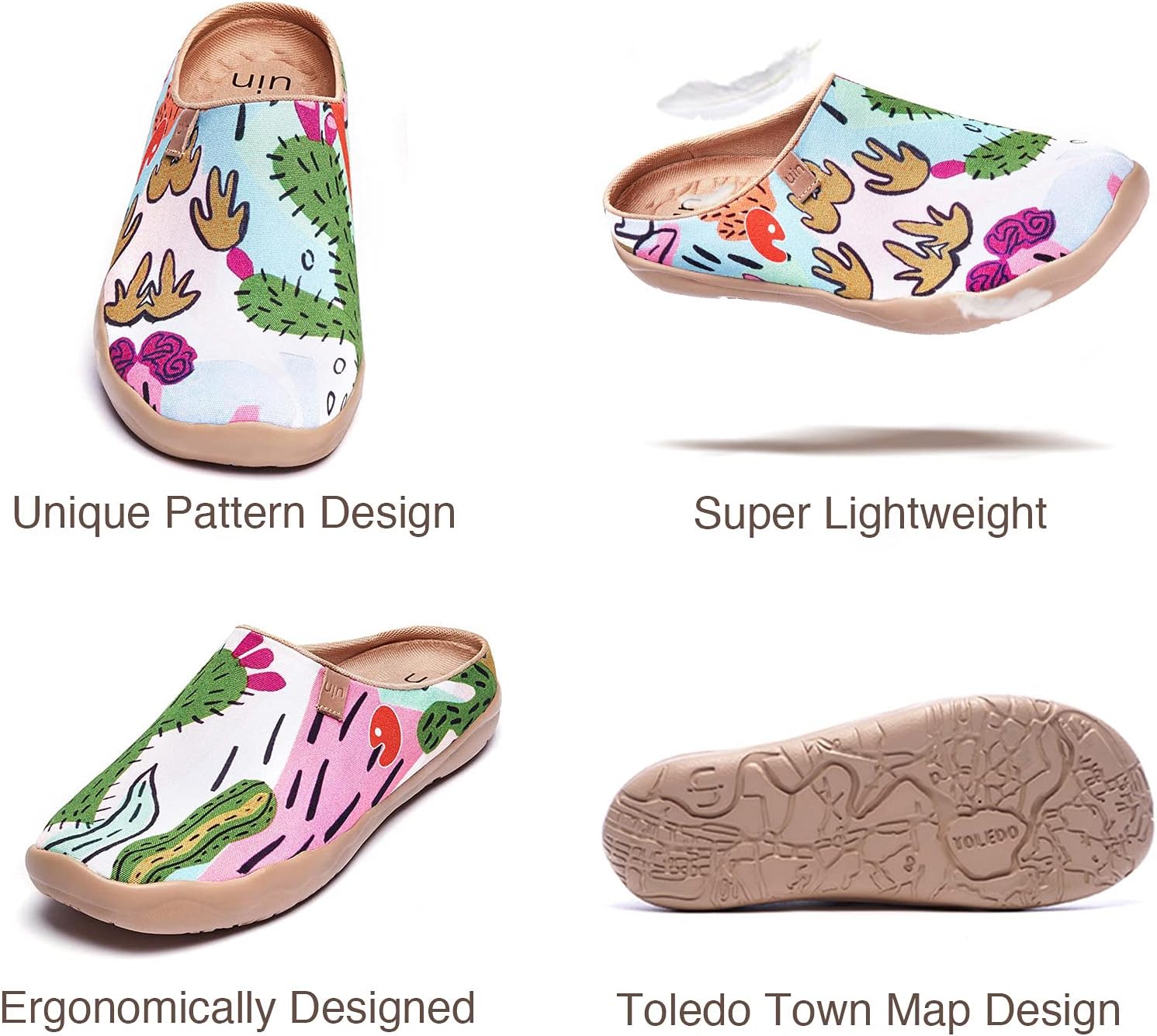 UIN Women’s Slip On Mules Comfortable Flat Lightweight Wide Toe Clog Casual Art Painted Travel Shoes Malaga Series