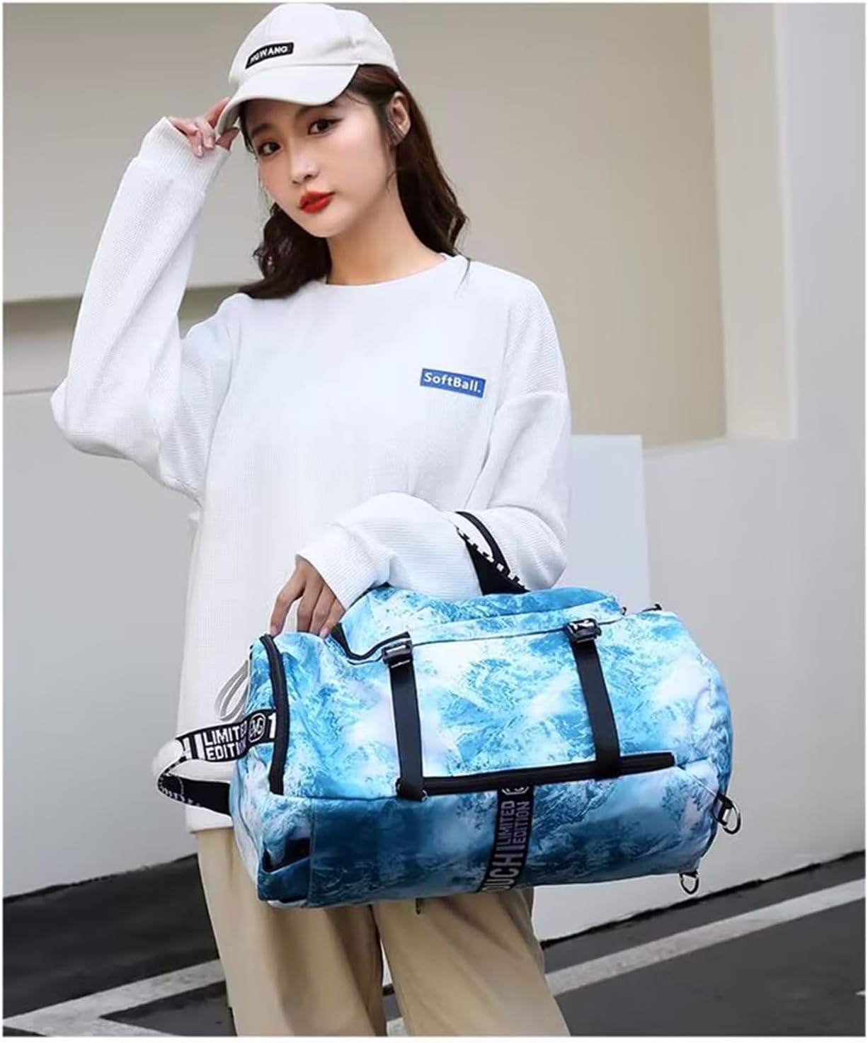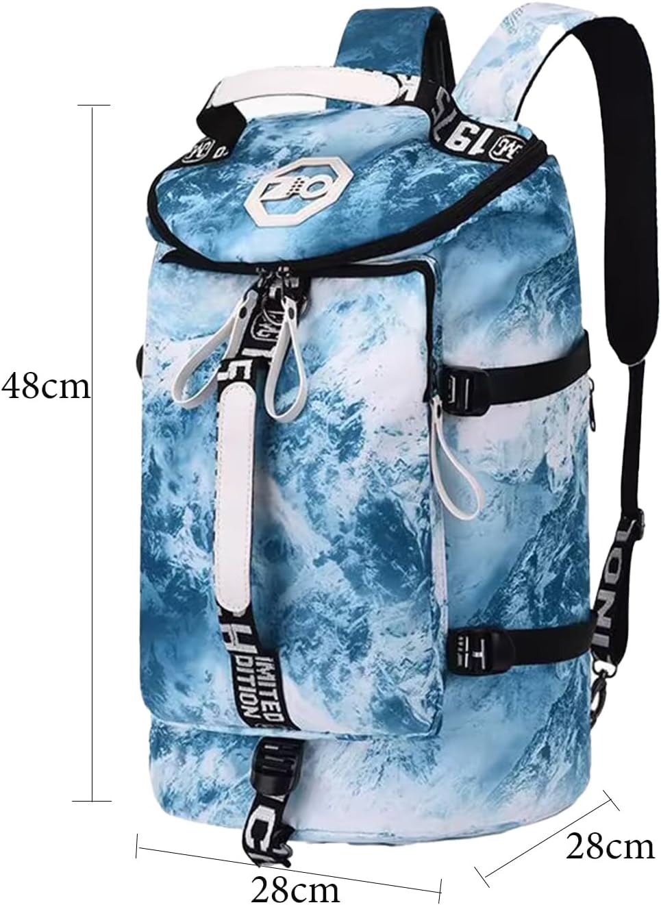 Dimensions:50cm x 28cm x 28cm/20*11*11 inchFabric: Water-resistant materialIncluded :1 Sports Gym BagColors: Black/Blue/Red/GreenMulti-Carrying ways: Holdall Bag,Shoulder Bag,Crossbody BagType: Gym Bag,Yoga Bag,Sports Bag,Travel Bag