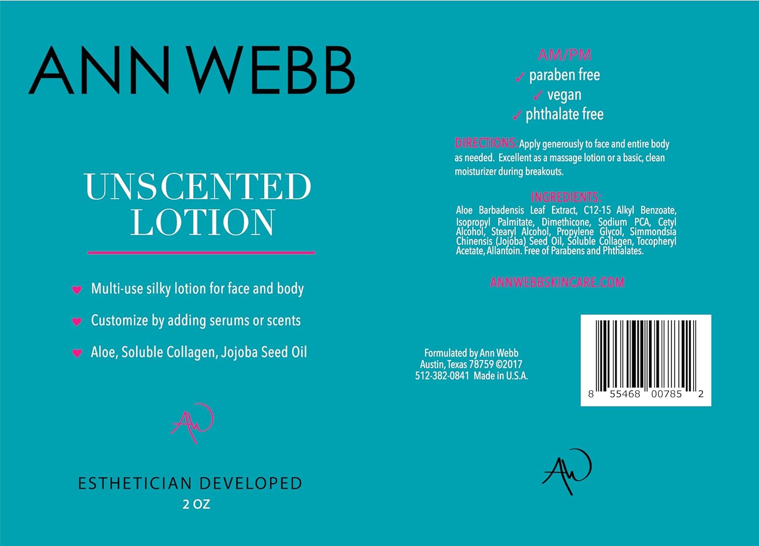 ANN WEBB Skin Care Unscented Lotion for Face and Body