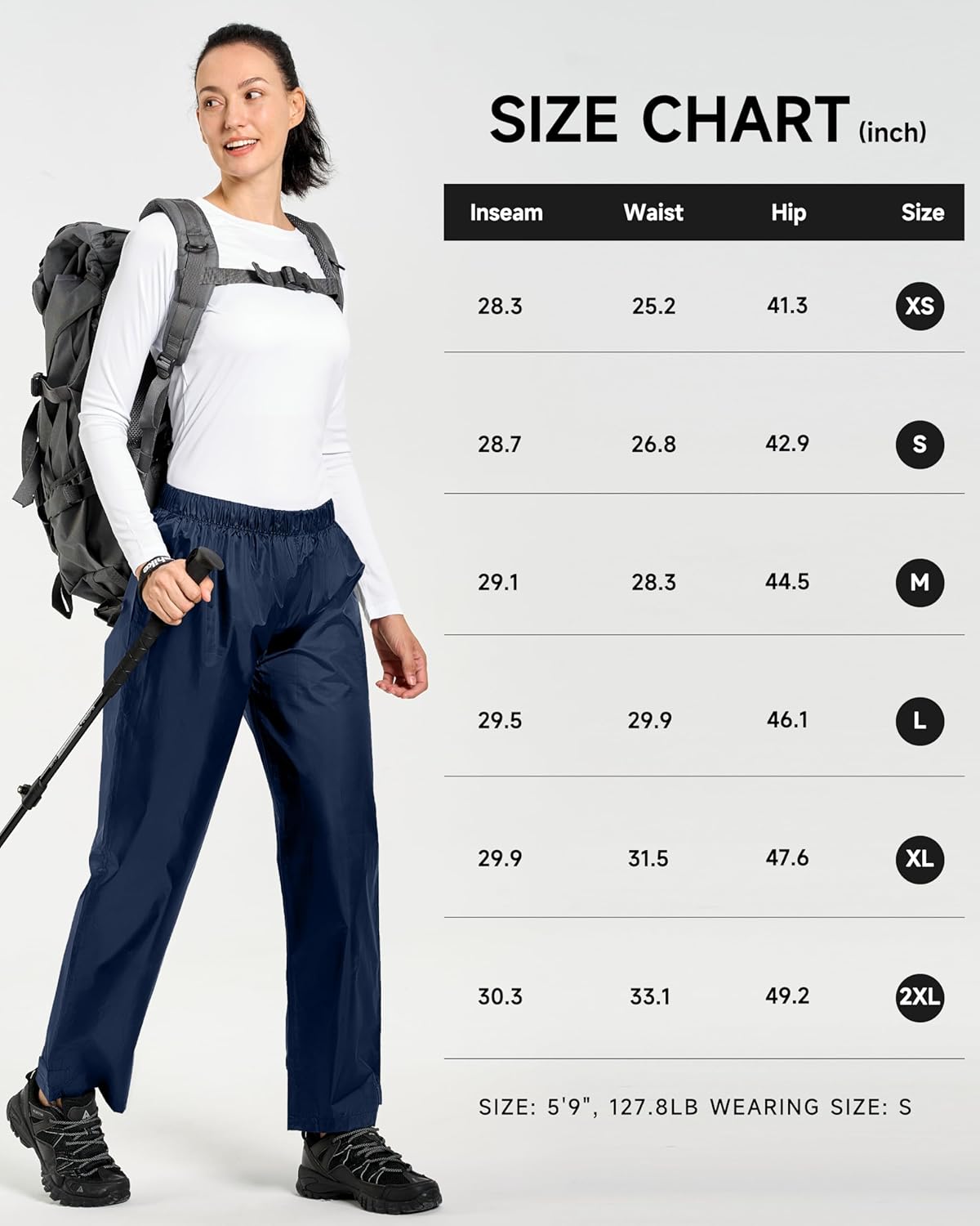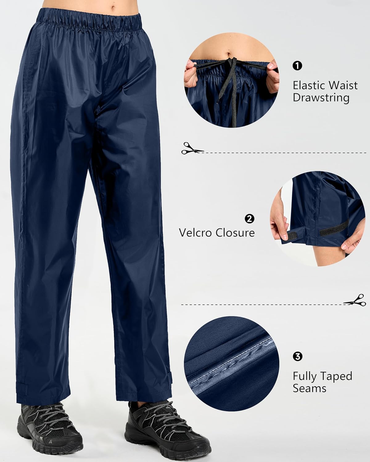 Hebepol Womens Rain Pants Waterproof Lightweight