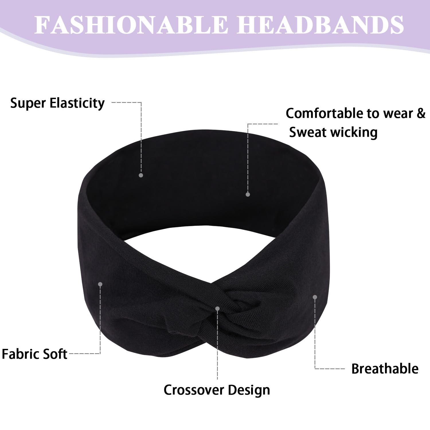 XTREND 4 Packs Black Headbands for Women ,Stretchy Anti-Slip Design Sweat Head Bands for Women’s Hair, One Set Multi Styles Fashion Headscarf for Women Yoga Workout Sports Every Day Basic Accessories