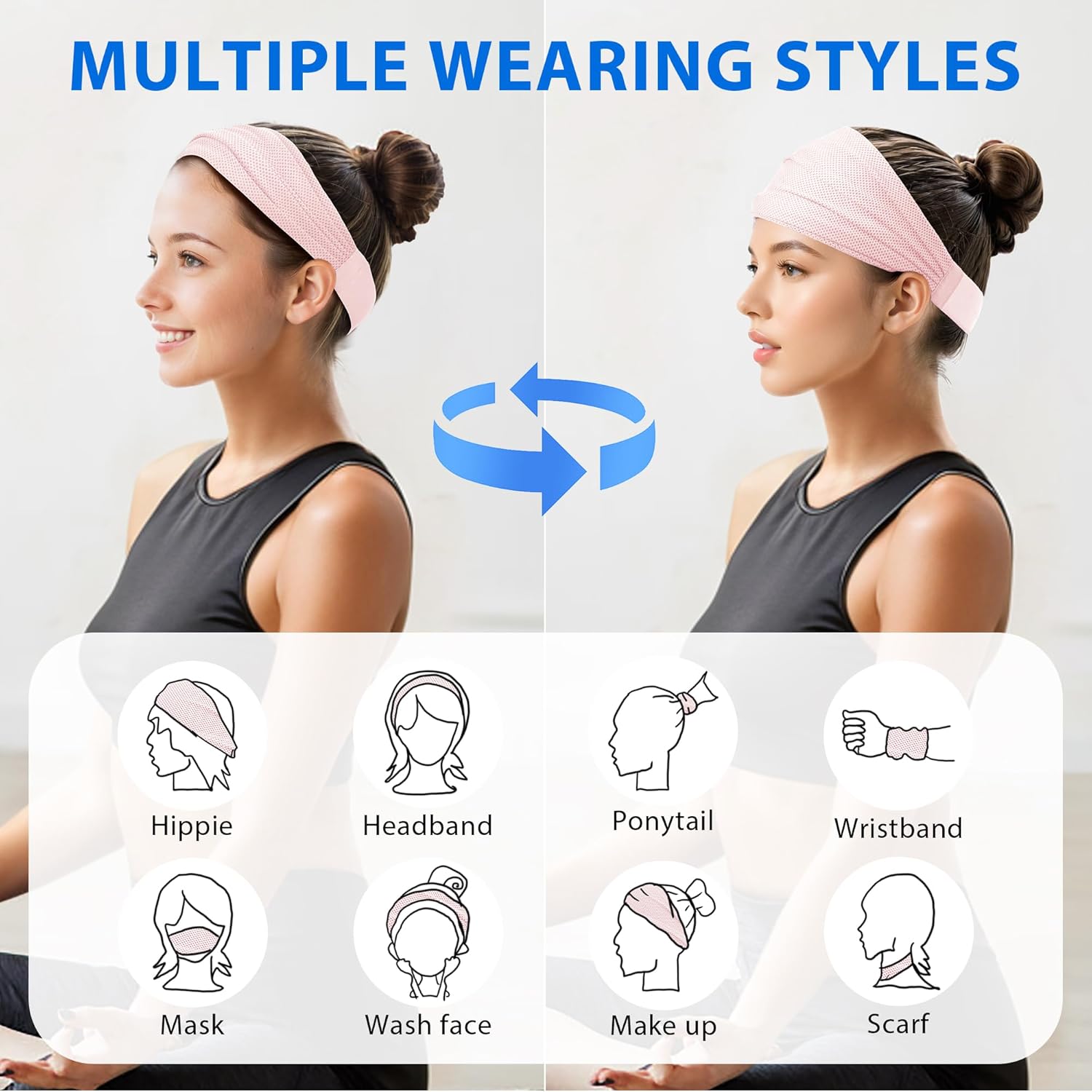 Multiple Wearing Ways: The sweatbands for women can be worn as a wide headband, neckband, hairband or wristband for UV protection and hair control; The front width of the headband can be up to 27cm/10.63 inches, allowing you to seamlessly transition between working out, casual outings or as an everyday fashion accessory